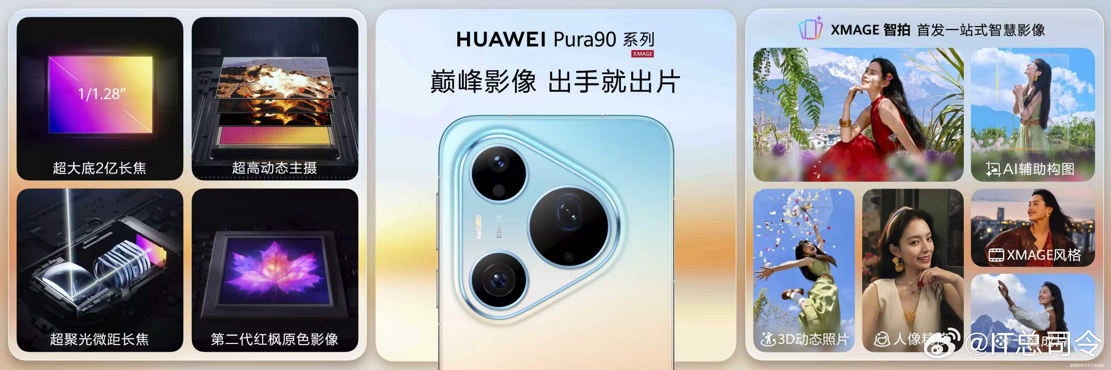 【让手机自带摄影师又带百万修图师!余承东称手机摄影进入智拍时代】这代华为Pura90的影像系统是真正的“六边形战士”!让手机自带摄影师,又自带百万修图师,XMAGE智拍提供了智慧创作核心。同时,“千里眼”2亿长焦带来超凡远摄解析力;“顺风耳”远距人声增强,让视频收音更清晰;再加上超高动态主摄和长焦微距,每一处都彰显顶级水准。!余承东说Pura90是拍照Pose机