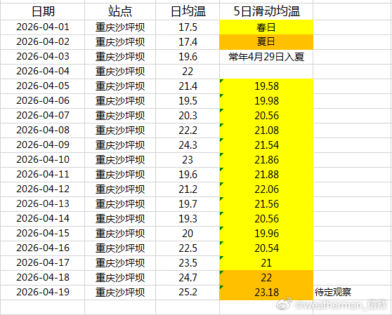 重庆沙坪坝目前有了2组夏日,但因为20日降温,21-22日气温也偏低,这轮入夏有可能会失败。23日以后气温回升,之后可能再次重启入夏进程。近期东北入春也在推进中,沈阳走完流程,反推4月8日入春。长春今天是判定日,尽管降温,但入春无悬念,反推4月12日入春。哈尔滨和西宁将是最后2个入春的省会城市,目前待定中。