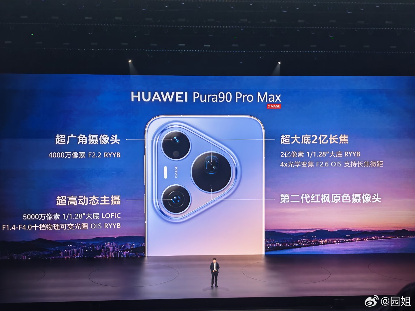 HUAWEI Pura90 Pro Max 共五款配色,屏幕方面:搭载全新抗反光耐刮昆仑玻璃,屏幕耐刮能力相较普通玻璃提升16倍,耐摔能力提升20倍,屏幕反光有效减少70%。影像方面:XMAGE 超广角摄像头4000万像素F2.2RYYB .MAGE 超大底2亿长焦2亿像素1/1.28"大底RYYB 4x光学变焦F2.6OIS支持长焦微距超高动态主摄5000万像素1/1.28"大底LOFIC F1.4-F4.0十档物理可变光圈OISRYYB 第二代红枫原色摄像头,行业首发两亿像素RYYB传感器,20倍依然清晰