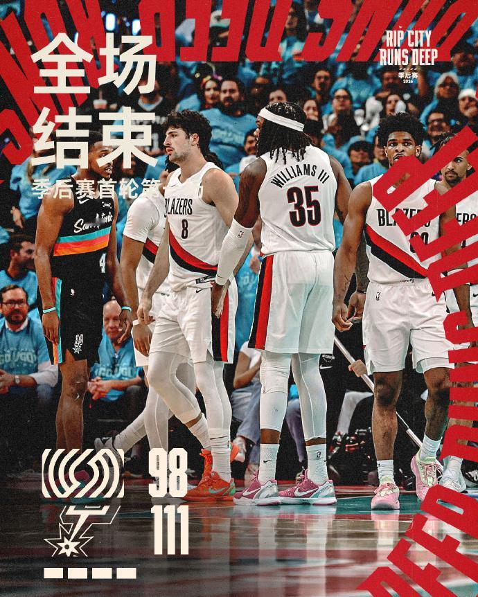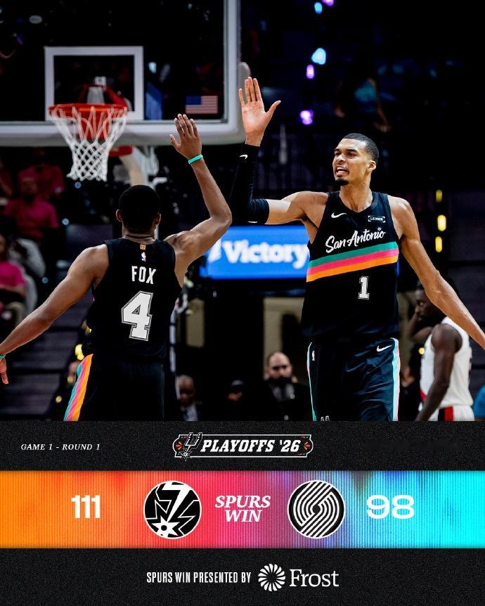 尽在掌握!马刺时隔7年季后赛首胜 文班亚马的季后赛首秀,看到的不是紧张,而是兴奋,大魔王的天赋实在恐怖,完全没有给开拓者任何机会!35分5篮板1助攻2封盖,文班亚马成为NBA历史上首位,在在季后赛首秀里拿到35+得分,并且投进5+三分球的球员。开拓者是一支善于冲击篮筐和投三分的球队,但篮下一有魔王封堵,甚至连三分都投不过文班,这样的比赛想赢球基本不可能!阿夫迪亚的表现依旧出色,但摆在文班亚马面前,只能说虽同是全明星,但对面的是争MVP级别的!杨瀚森成为了第五位登上NBA季后赛的中国球员,只不过数据栏上,除了52秒的登场时间,一切都还是0,期待开拓者能带来多一点惊喜吧!
