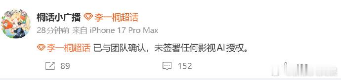 多位艺人否认签约AI授权 今天爱奇艺官宣有100+艺人签约AI艺人库,引发系列热议。随后,于和伟、张若昀、李一桐、王楚然多位演员否认签约AI授权。