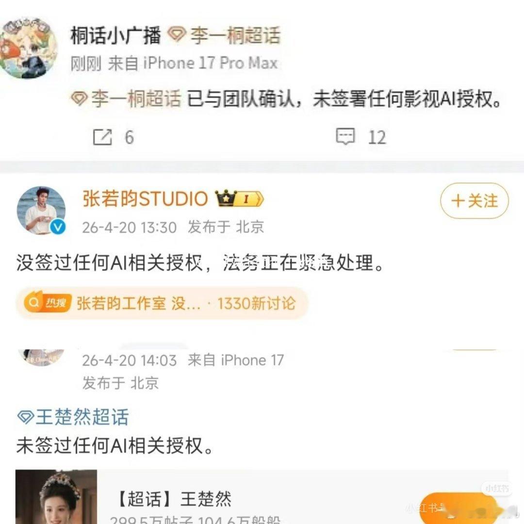 爱奇艺疯了感恩张若昀,于和伟,李一桐,王楚然等艺人纷纷发表未授权ai声明,身体力行不支持爱奇艺