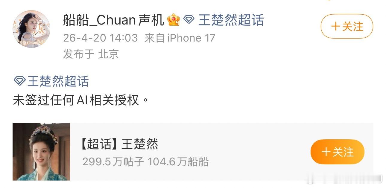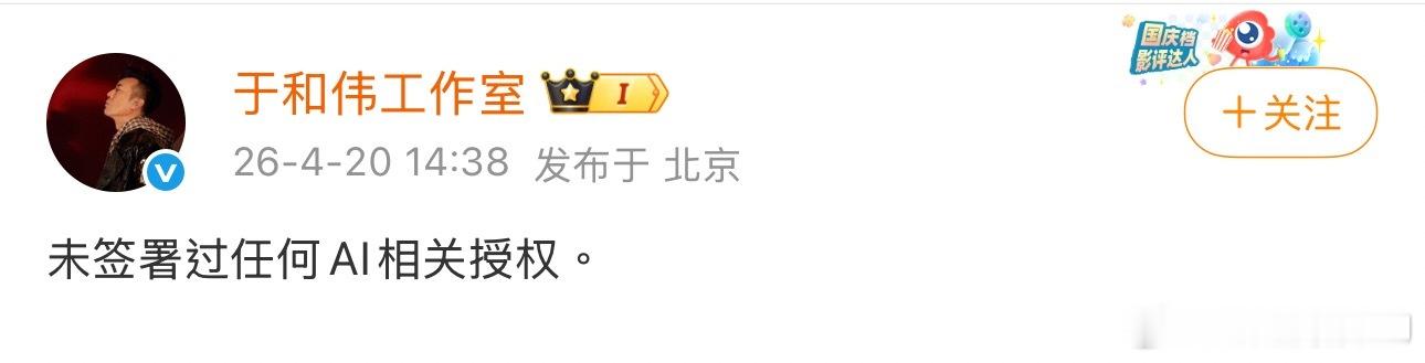 于和伟工作室和王楚然工作室辟谣,没有签过任何AI相关授权。