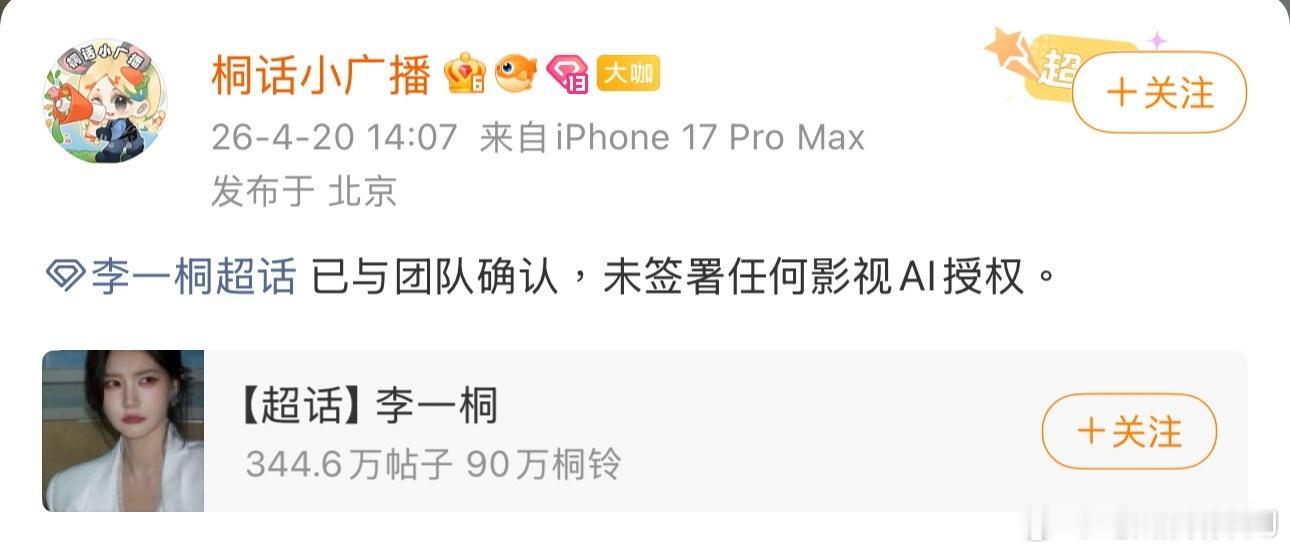 李一桐、陈钰琪、王玉雯的粉丝对接号也都强调没有AI授权。