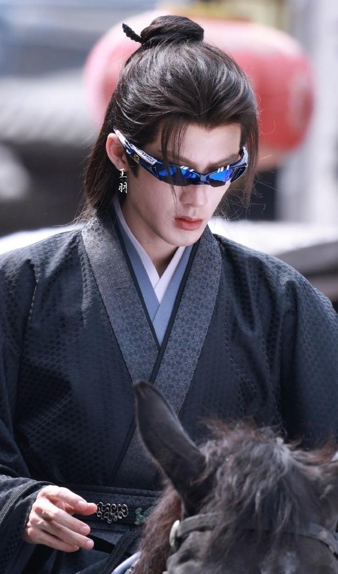 檀健次黑衣古装墨镜骑马路透檀健次时尚的谢却山 檀健次时尚的谢却山,檀健次黑衣古装