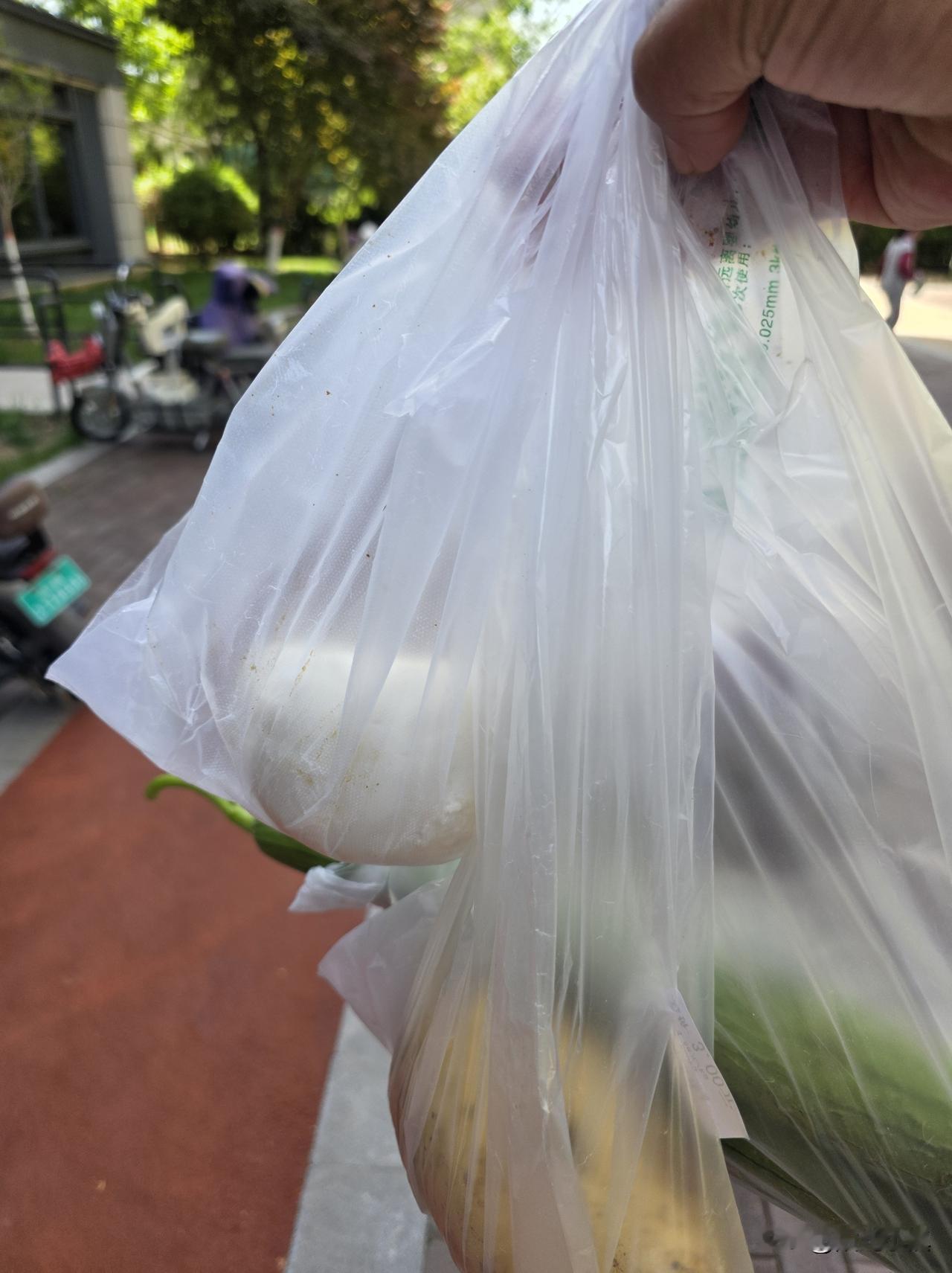 今天午饭后,在快餐店顺便给lucky买了一个鸡腿和一个馒头,然后又去超市买了丝瓜和土豆,这些东西一样装在一个袋里,手里提着好几个袋子,掉了也不知道。