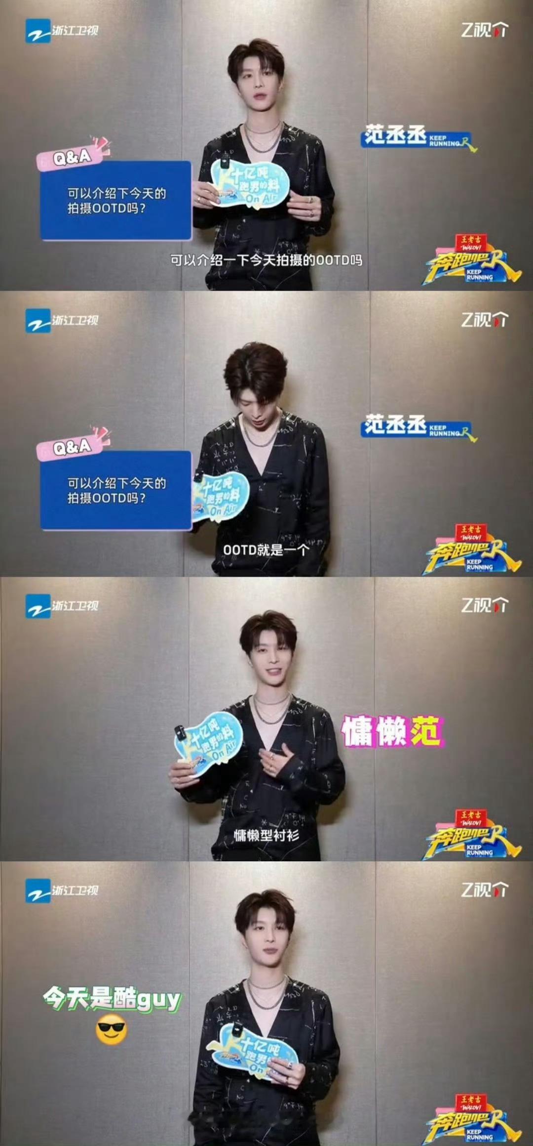 范丞丞ootd撞衫白鹿睡衣奔跑吧范丞丞一身慵懒衬衫OOTD,还得意说自己反差感拉