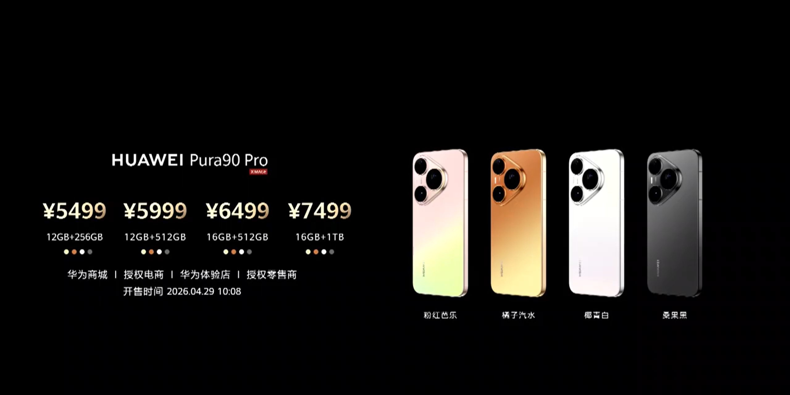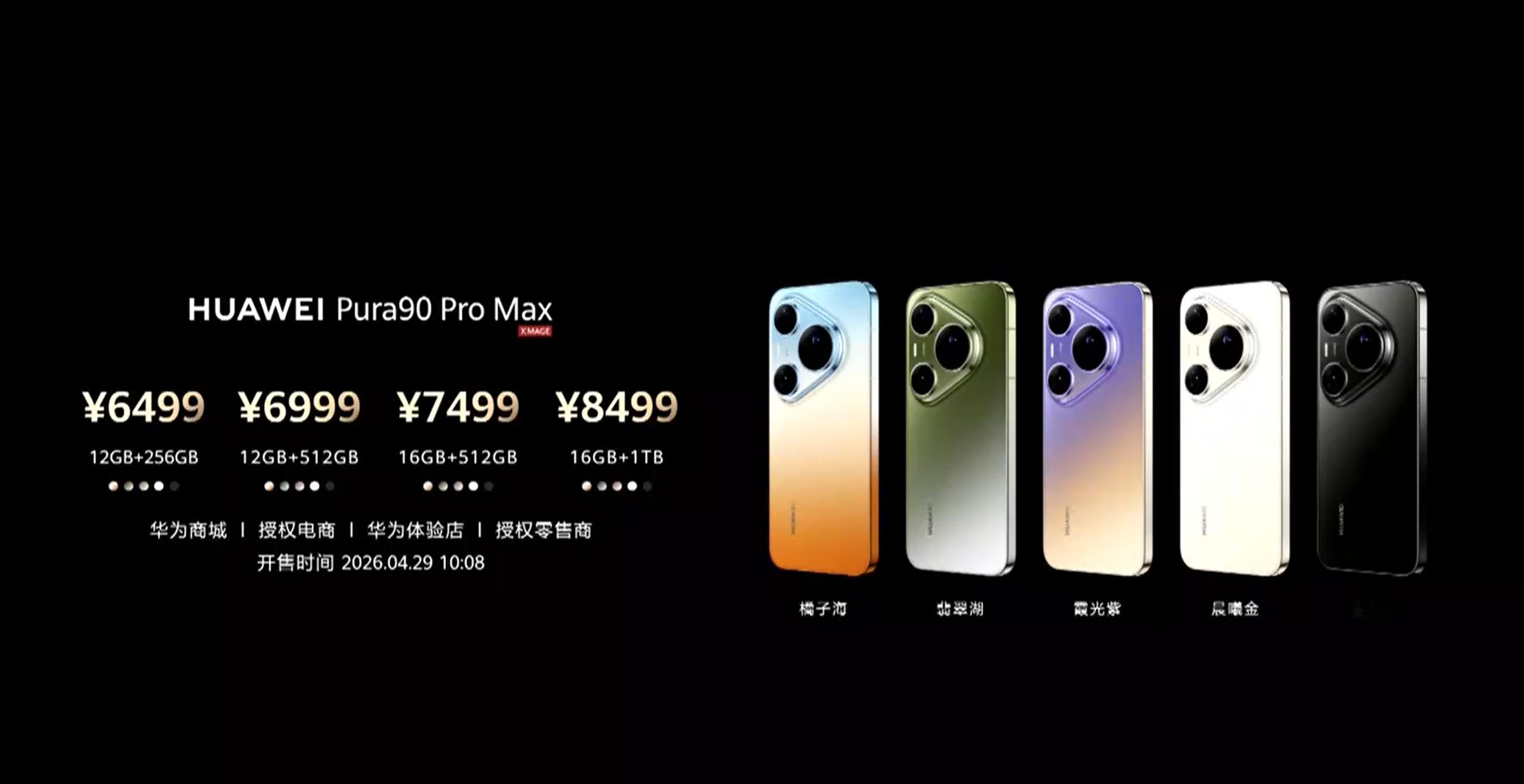 -Pura 90 Pro Max12+256GB:6499 元12+512GB:6999 元16+512GB:7499 元16+1TB:8499 元