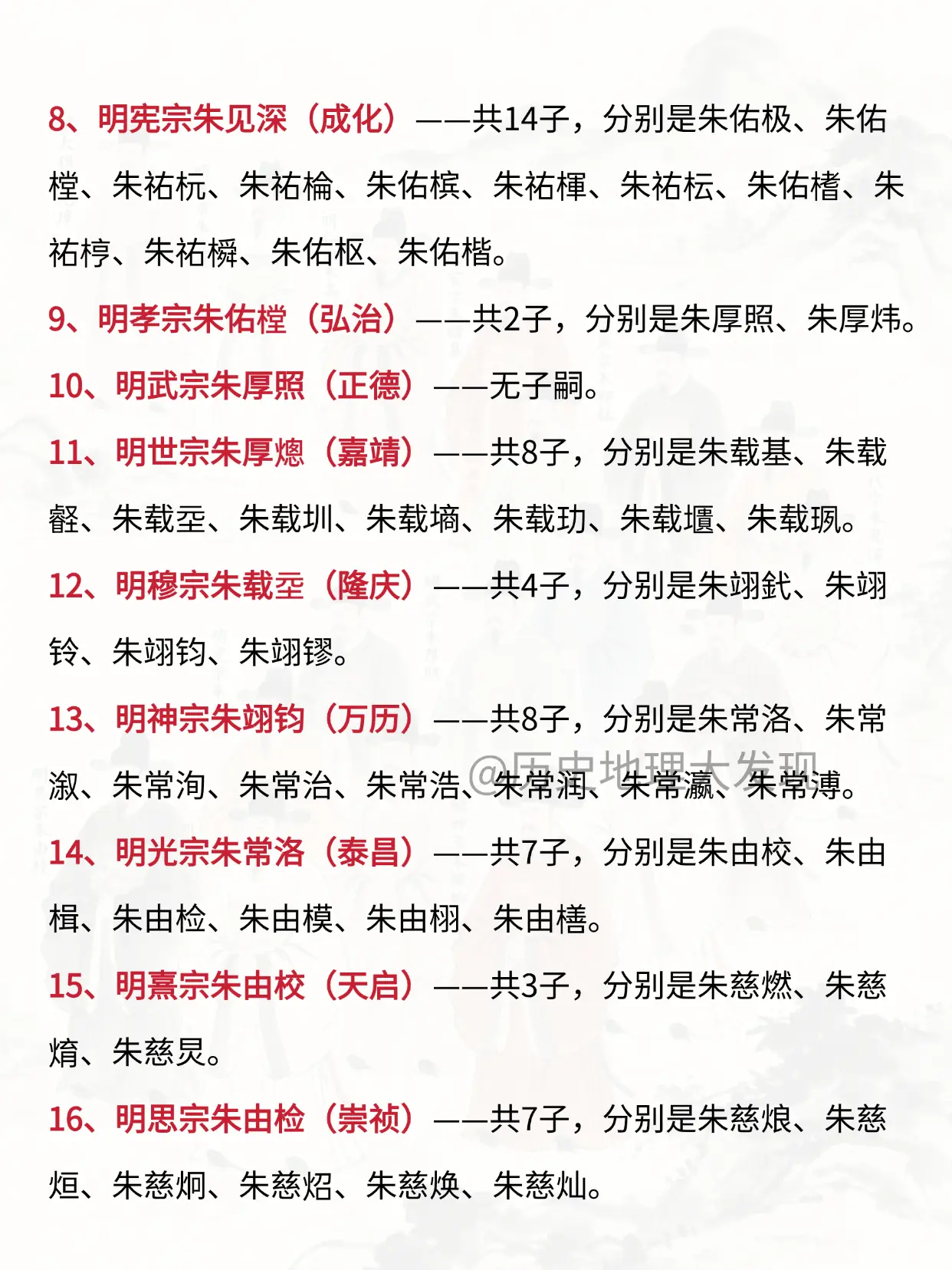 明朝历代皇帝的儿子一览。