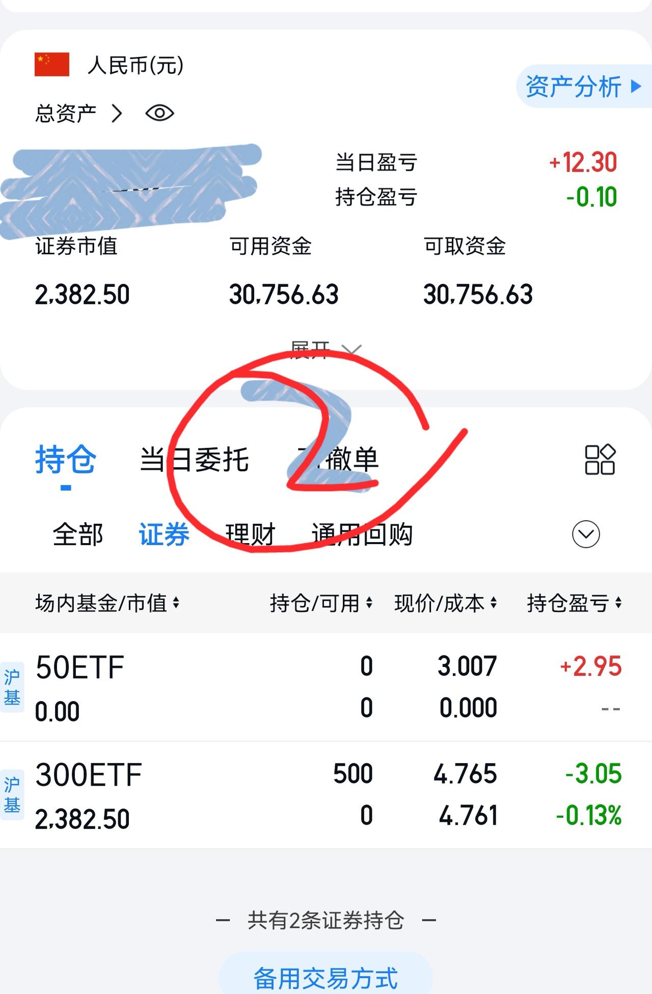 账户③,止盈300E,换成创业板E。