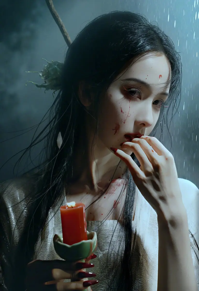 陈都灵一袭白衣化身清冷狐妖 脸颊带血眼神撩人妩媚多情