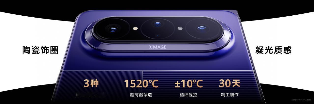 华为Pura X Max继承华为阔折叠系列先锋拼接家族设计,搭配光栅纹理打造立体视觉层次,且首次将高端腕表专属陶瓷材质应用于镜头模组;其中最为繁琐的星际蓝配色工艺,创新融入3种纳米级稀土元素,并首次在1520°超高温锻造下实现原子级染色,达成色调与机身的完美统一,彰显精工细作的设计美学。