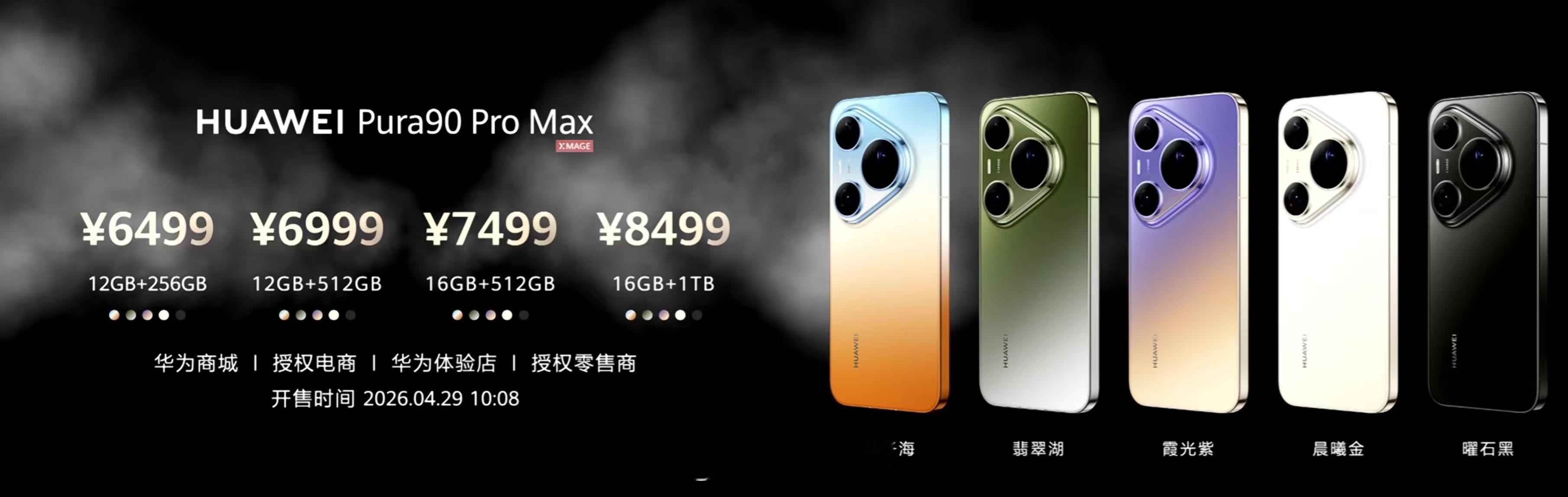 Pura90 Pro MAX12+256G 6499元12+512G 6999元16+512G 7499元16+1TB 8499元