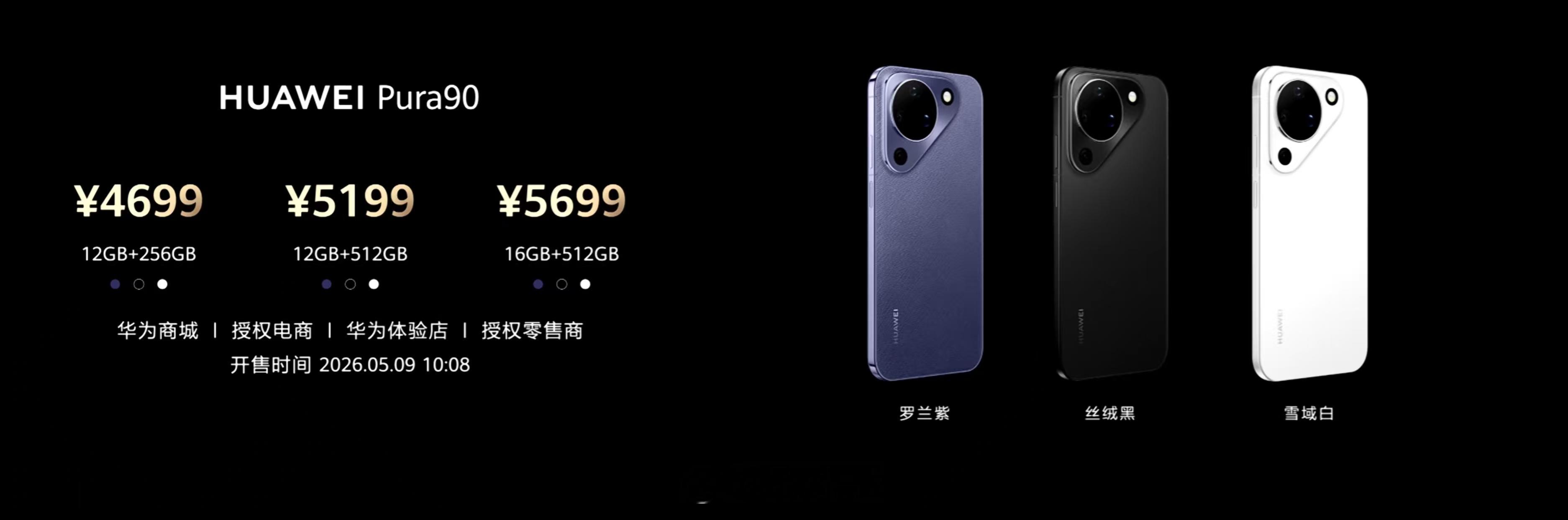 Pura 90系列价格来了,标准版12+256G 4699元12+512G 5199元16+512G 5699元