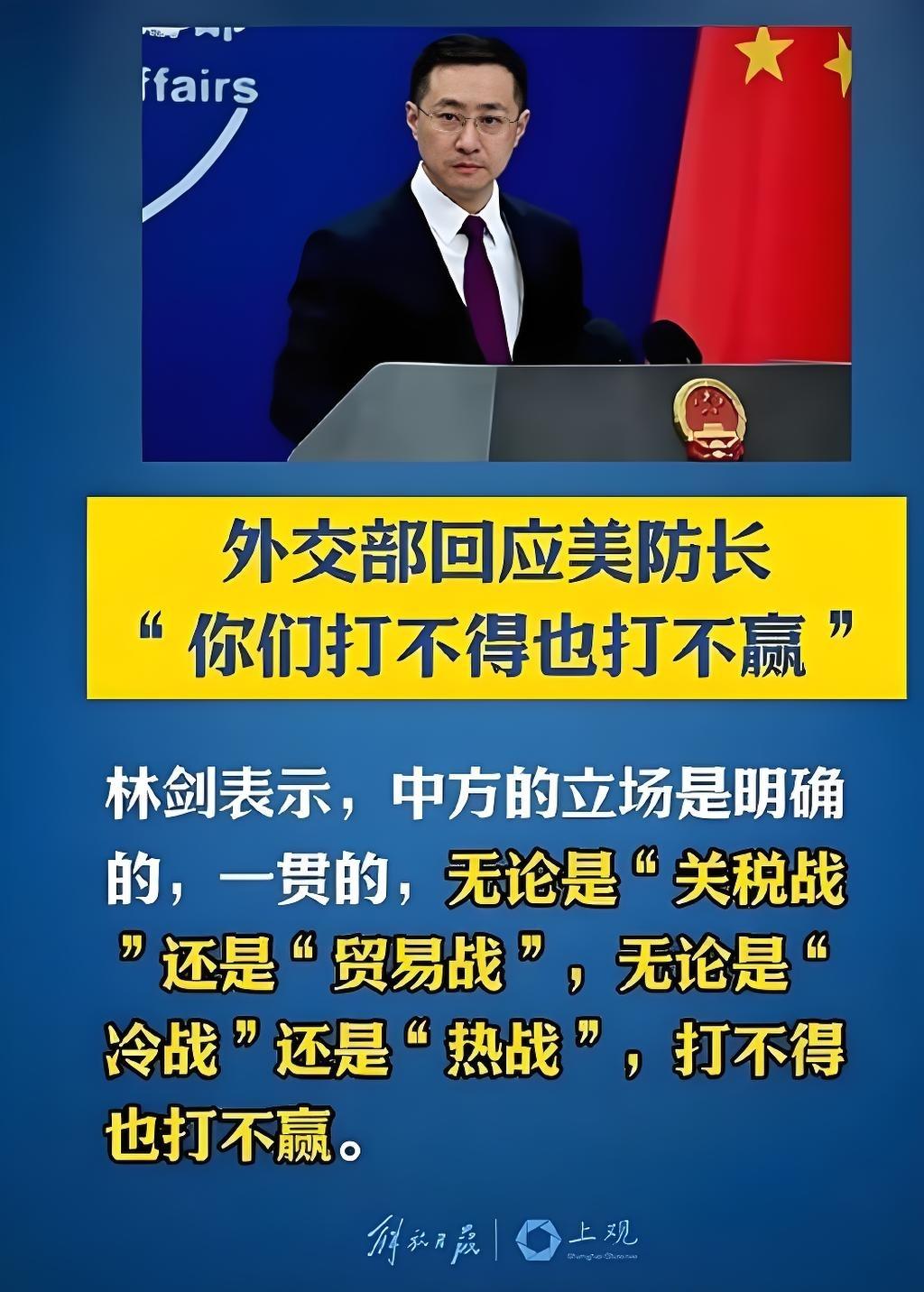 中国人民从来就不惧怕任何纸老虎!我们有全球最完整的工业体系,有捍卫国家主权的硬核反介入能力,更有14亿人万众一心的底气。我们从不主动挑事,但绝不怕事!台湾是中国的内政,任何外部势力敢伸手干预,必定遭到我们的坚决反制,奉陪到底!