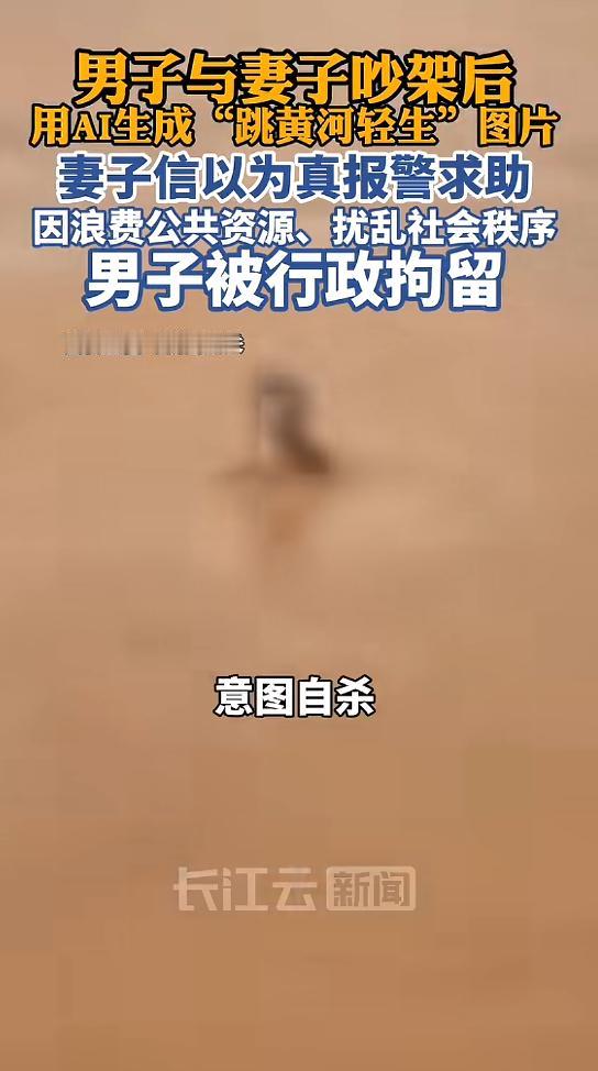 信息来源:一张“黄河轻生照”,牵动民警全力搜救,结果竟是丈夫用AI造假,只为吓唬妻子——齐鲁晚报