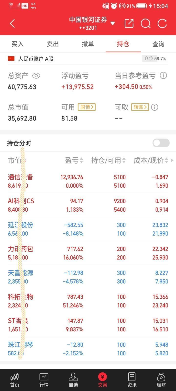 今天最多的时候赚800多,但是到收盘才剩下300块钱。今天总市值3.56万元,总资产6.07万元,今天总体账户反弹回本304元。现在仓位比较轻,今天没有跑赢大盘,希望明天好运吧。大盘股下跌 股市分析行情 股市补涨行情 股市成长历程 全球股市飙红 对股市无影响 股市时间表