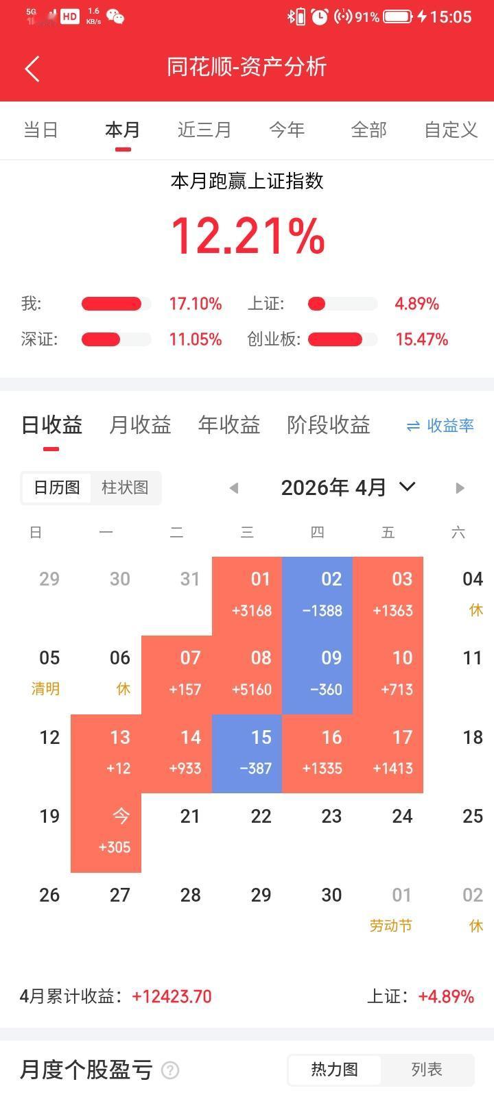 2026.04.20,今天股市依然强势,大部分股票都上涨,但是我持有的股票今天走势不好,两只股票下跌,其中一只还大跌,另外4只上涨一点点,又都坐过山车了,都高开高走,然后冲高回落,到收盘,一点点利润差不多都回撤完了。