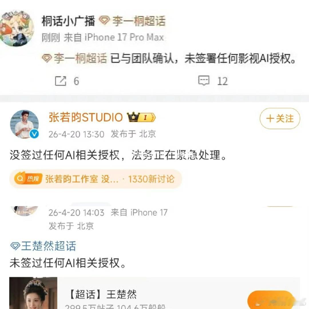 多位明星辟谣签署AI授权…爱奇艺何意味?多位明星辟谣签署AI授权多位艺人辟谣签署
