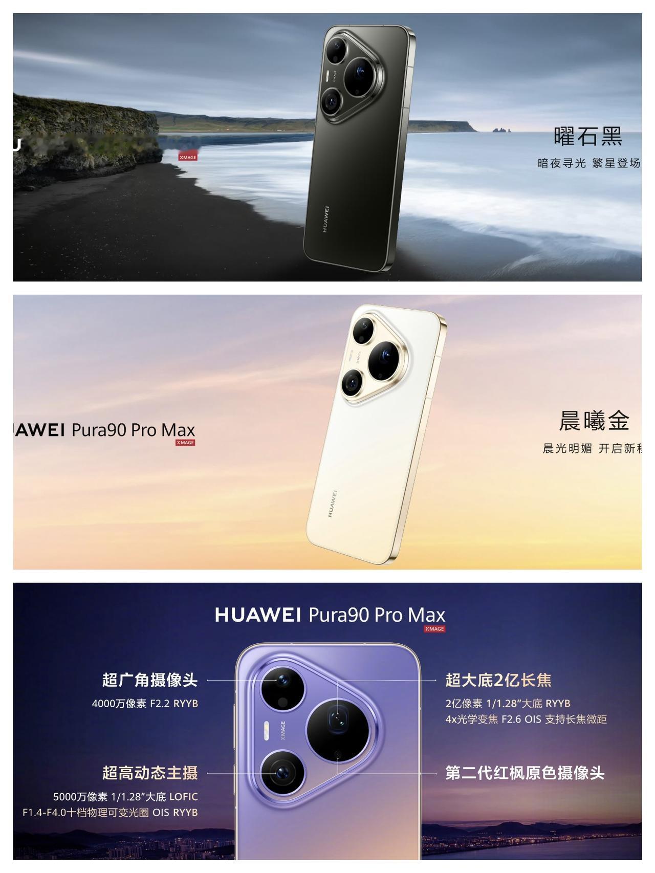 华为Pura90 Pro系列性能更强,影像也更好。其中,华为Pura90 Pro Max首发两亿像素RYYB潜望式长焦镜头,主摄是5000万像素RYYB的1/1.28大底传感器,外观配色挺不错的。