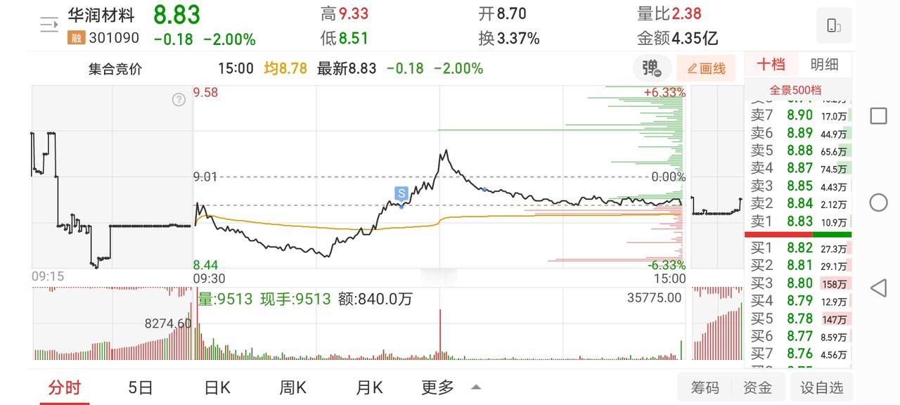 5、华润周五20cm炸板,周末年报减亏算是一定的利好,但是它开盘低开3个多点非常弱,开盘最多拉升到8.88就回落,之后一度下杀到近6个点后开始止跌企稳拉升,盘中再次拉升到8.88附近回落时选择止盈半仓,之后再次拉升翻红,错过了9.30昨天最高点的卖点后想着它能再次拉一波,没想到之后无承接下杀,感觉没戏的情况下在水下8.93的位置止损,这只个股当天亏损1个多点,整体盈利最终只有2个多点!