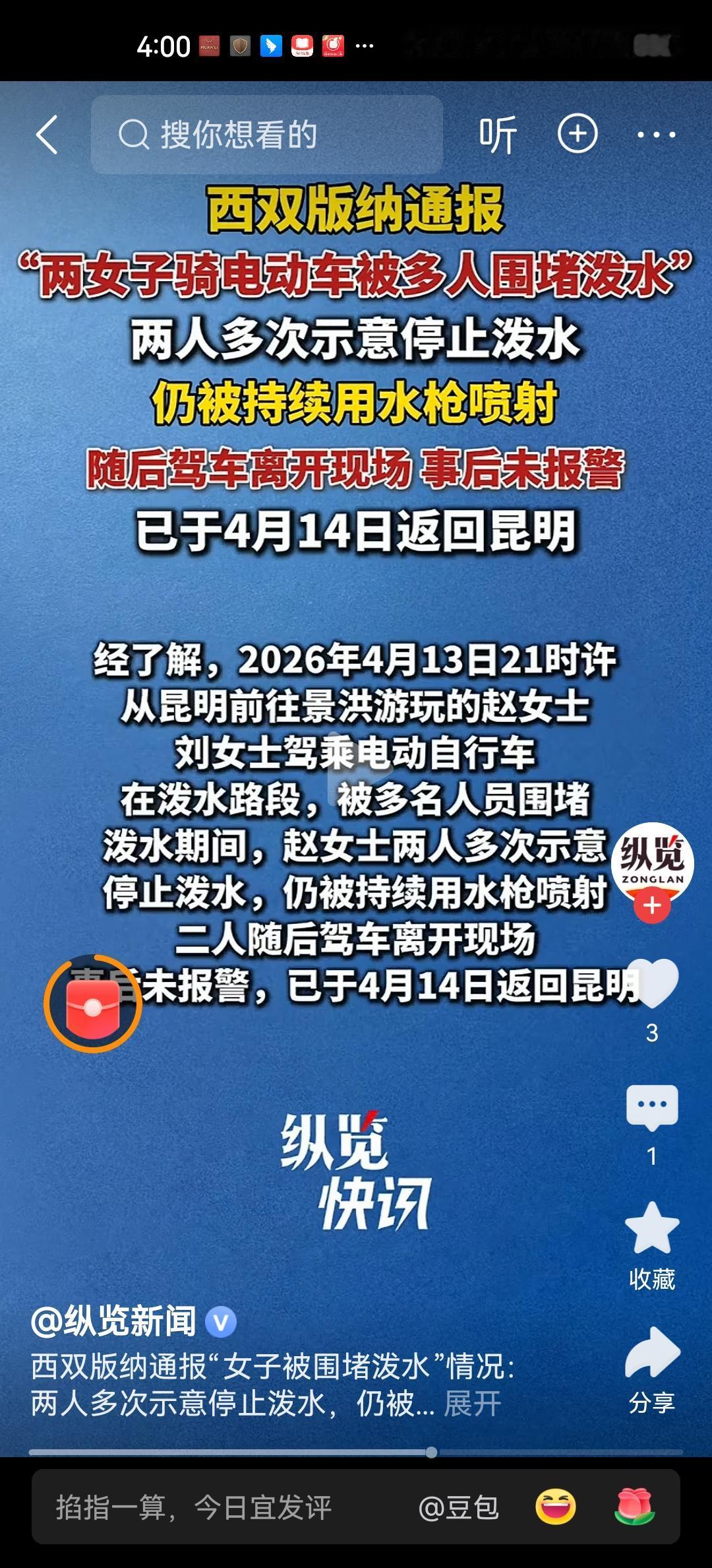 同样在云南景洪星光夜市,两名女子骑电动车经过,结果被数名男子背着水枪拦下,专门对着女子的脸、胸口和下半身喷。女子已经坚决叫停,没有人理会,而且不断的哄笑,更加的起劲。最后靠路人拉了一把才脱身,这哪是泼水节的庆祝活动,明明就是骚扰女子的流氓活动。