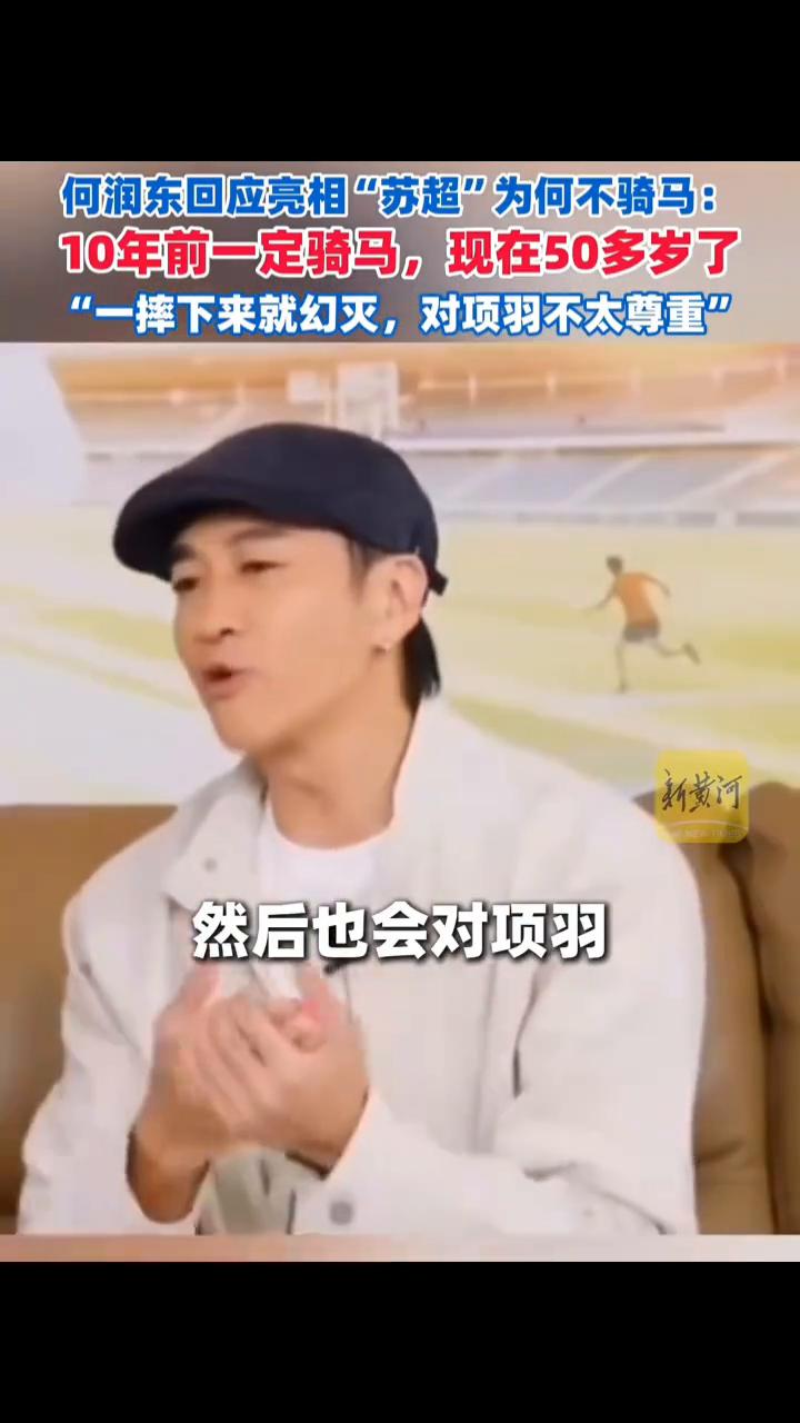 何润东回应亮相"苏超"为何不骑马:10年前一定骑马,现在50多岁了,"一摔下来就幻灭,对项羽不太尊重"。