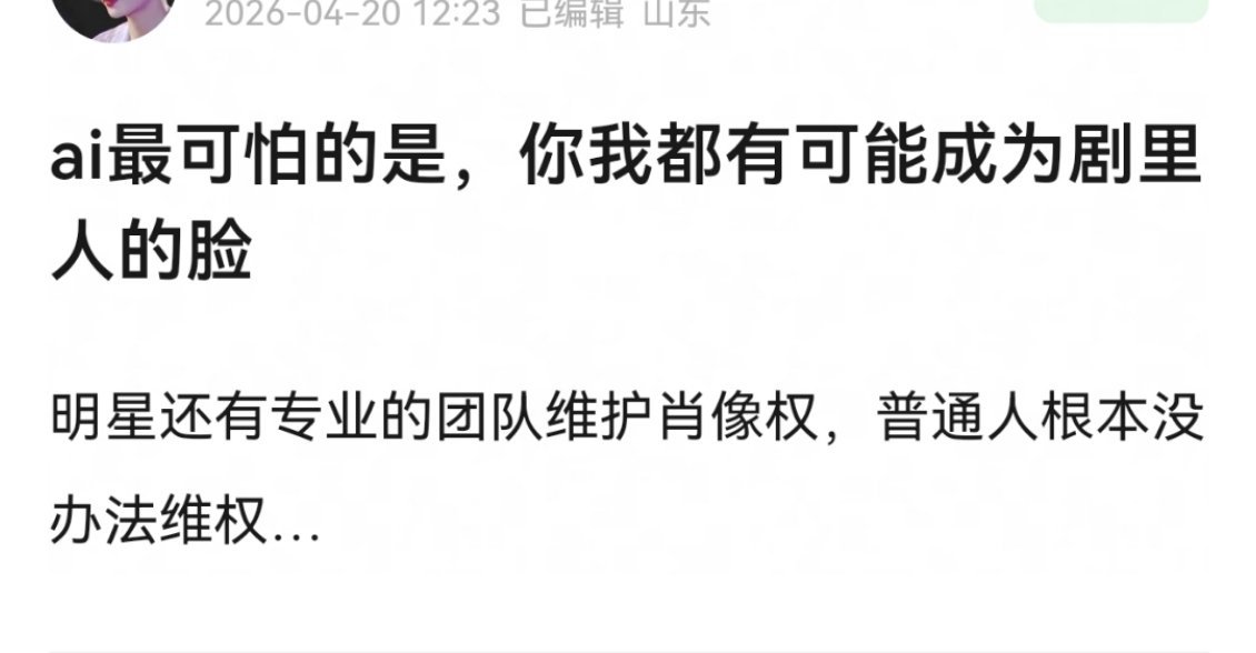 以后普通人的脸都有可能被盗用出现在AI剧里,明星能维护自己的肖像权能靠肖像权挣钱,普通人怎么办呢?