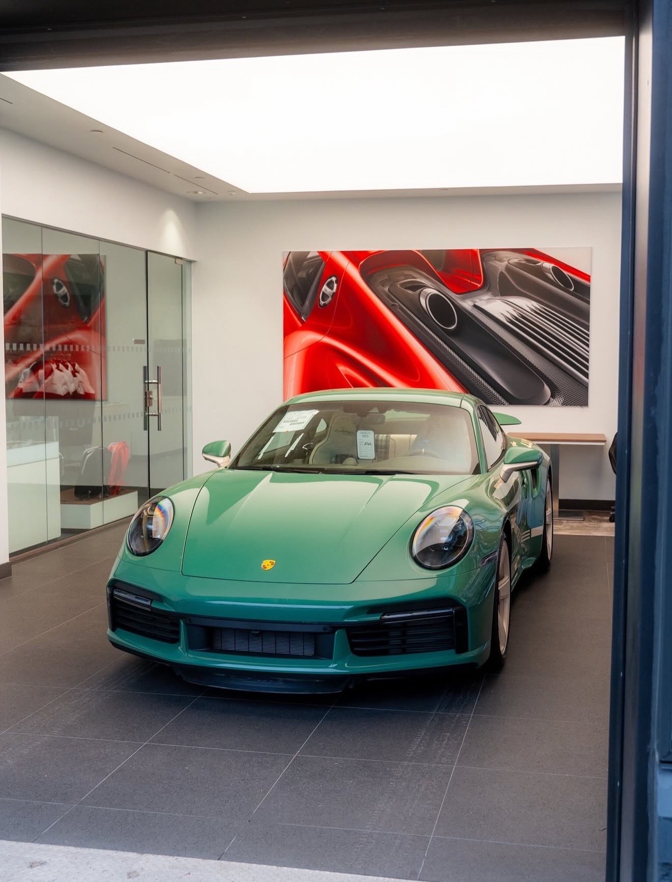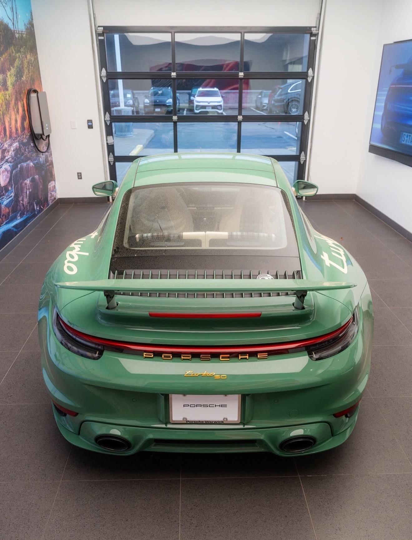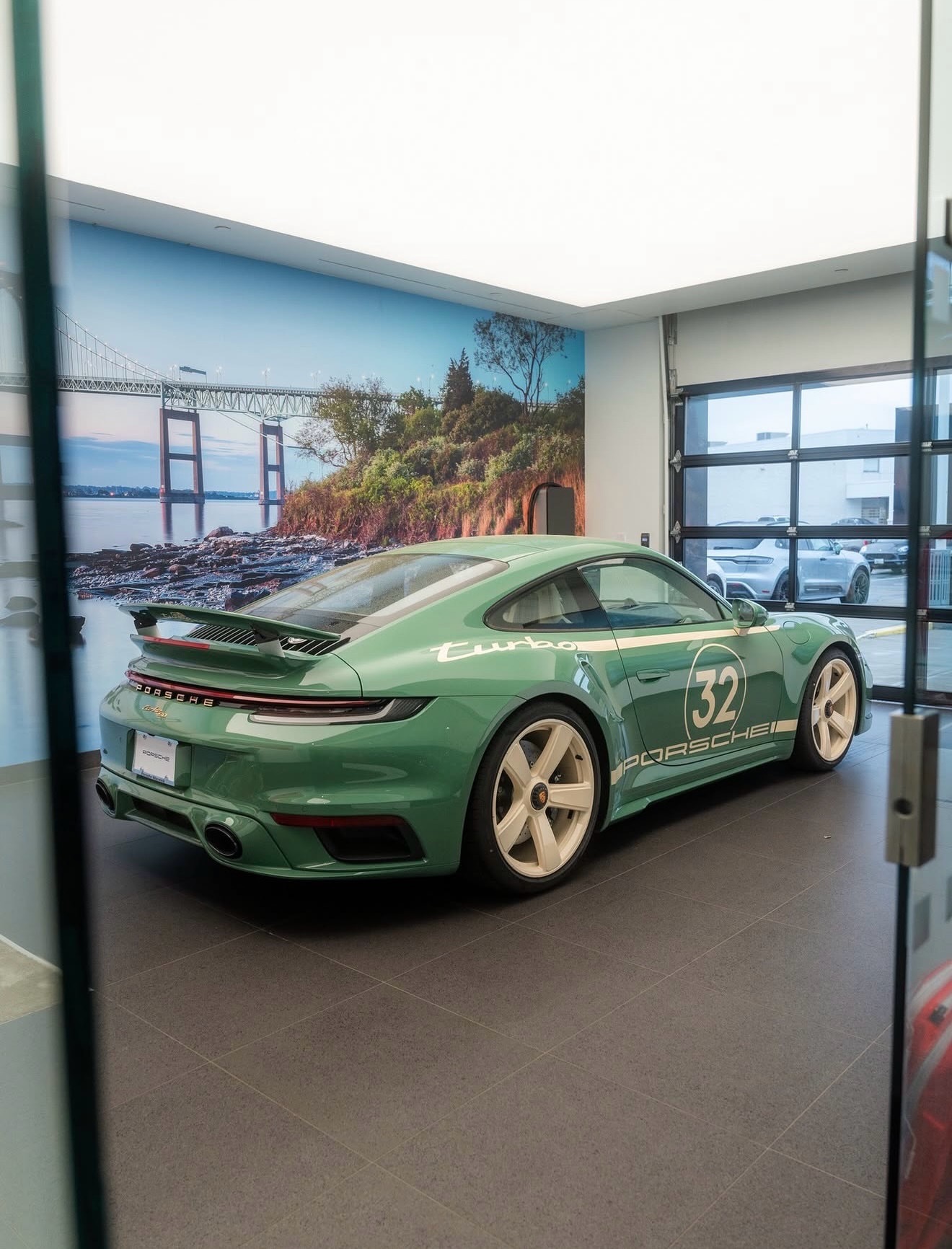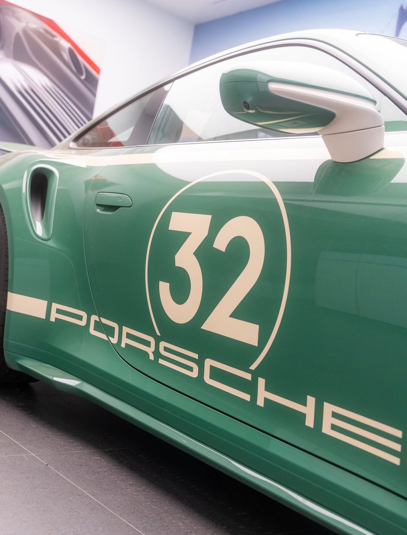 这辆车配备了 Crème White 轮毂、黑色刹车卡钳、Crème White 涂装,以及 Agave Green 与奶油色皮革内饰,并点缀着 MacKenzie Tartan 格纹元素。