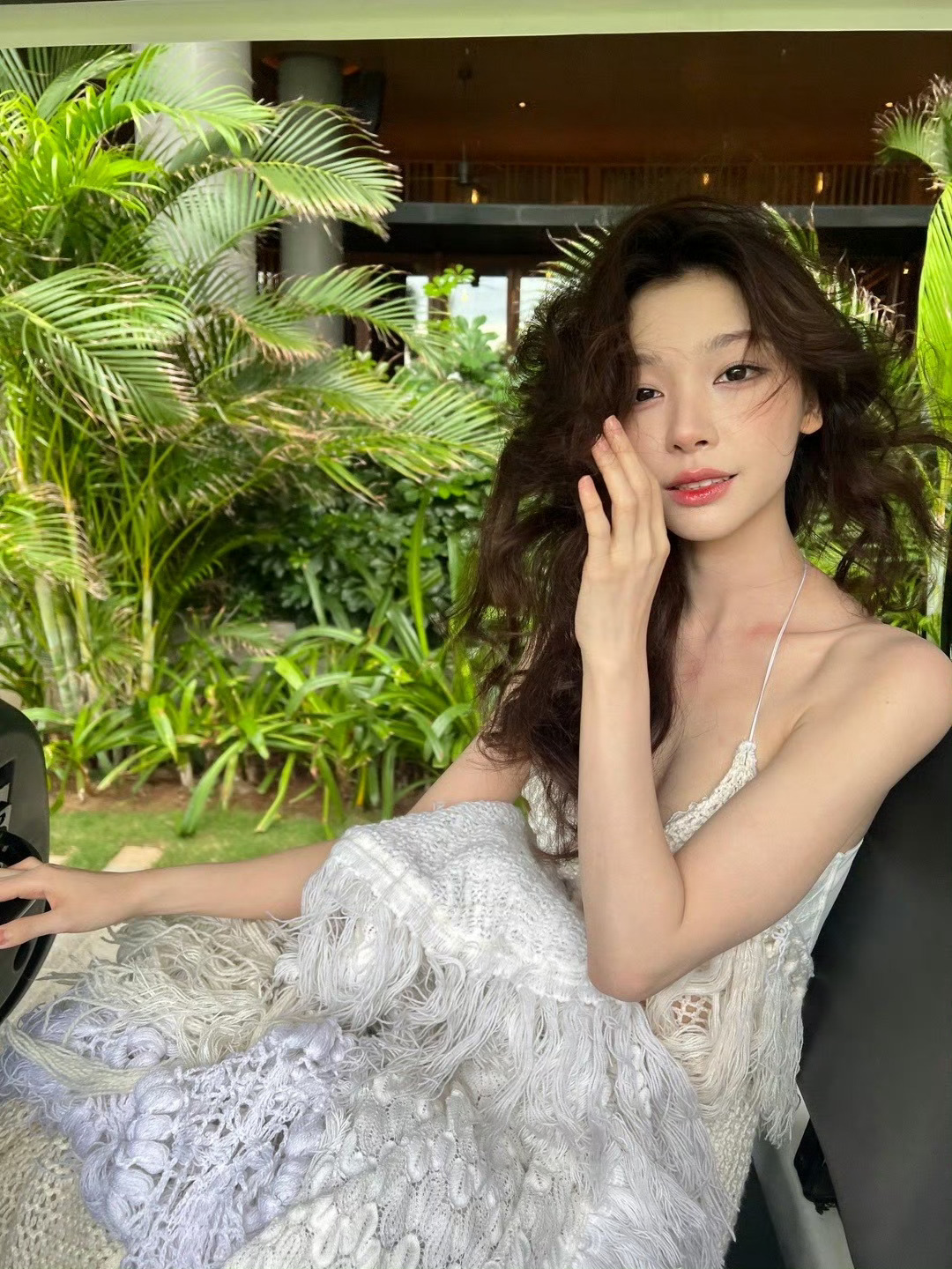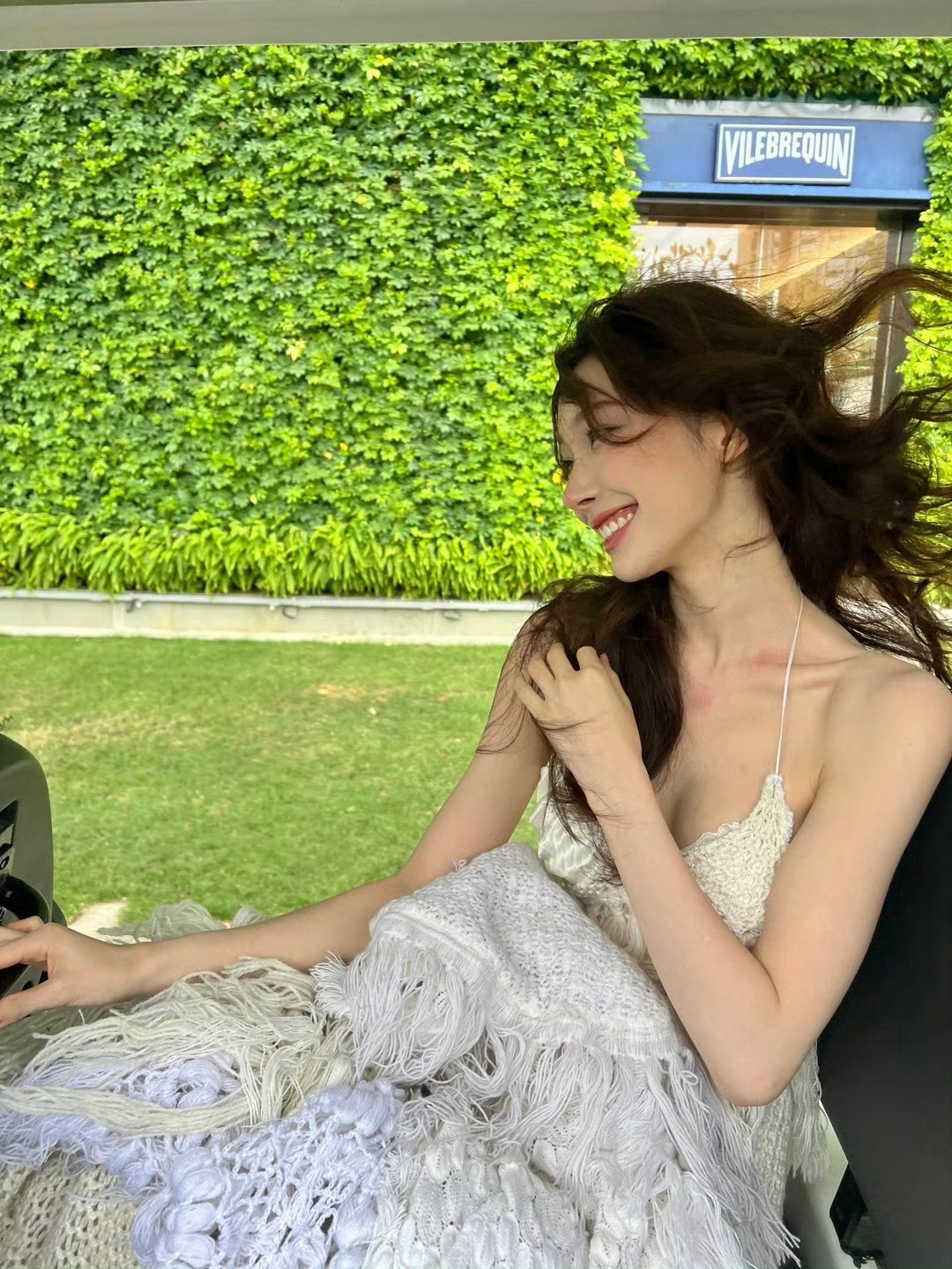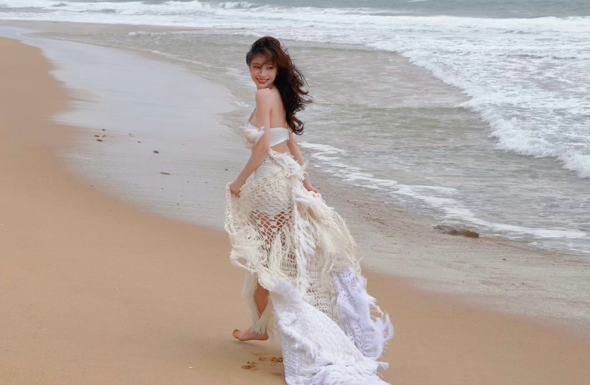 易梦玲,白色长裙穿搭,好柔美好身材。易梦玲