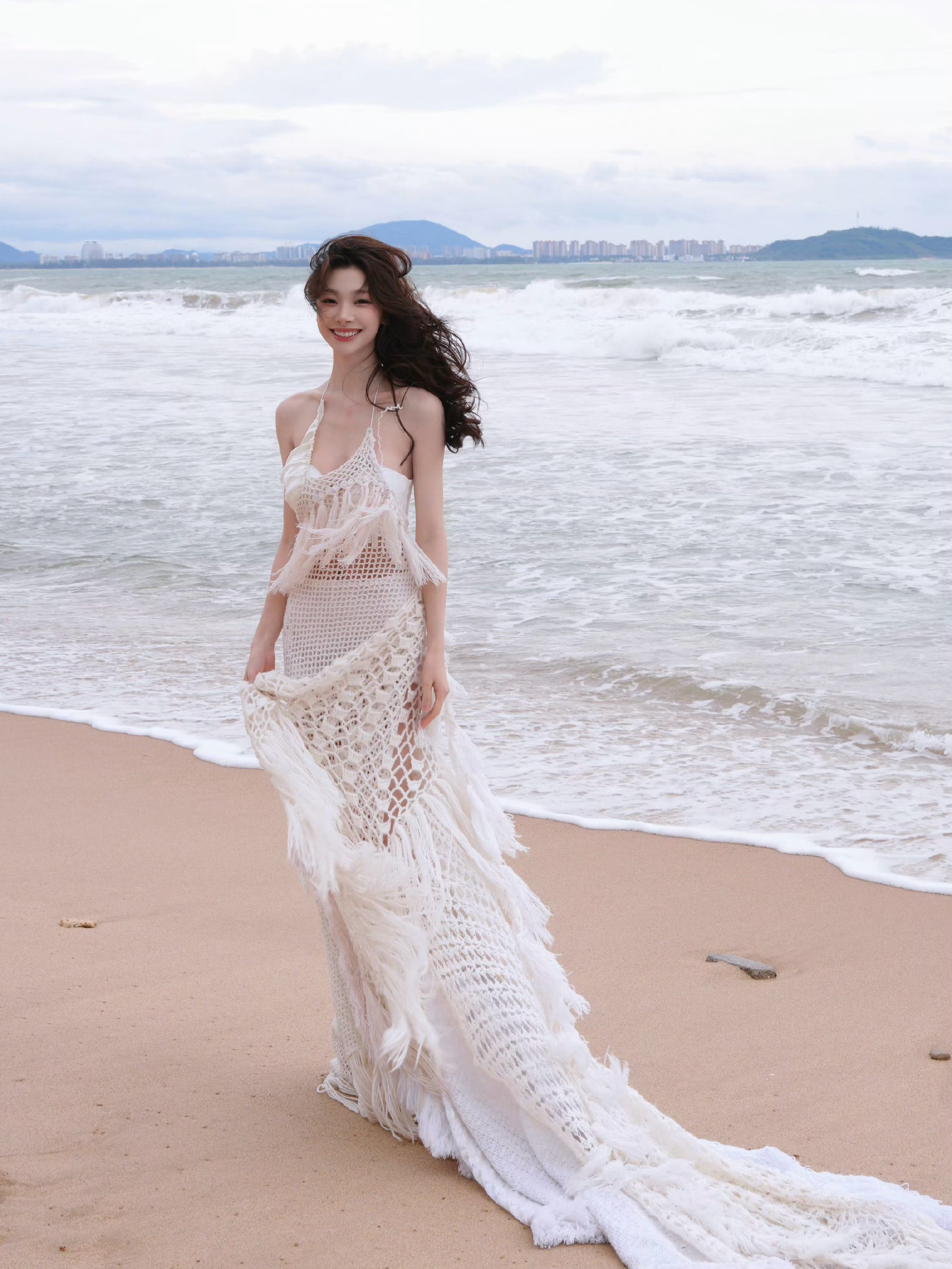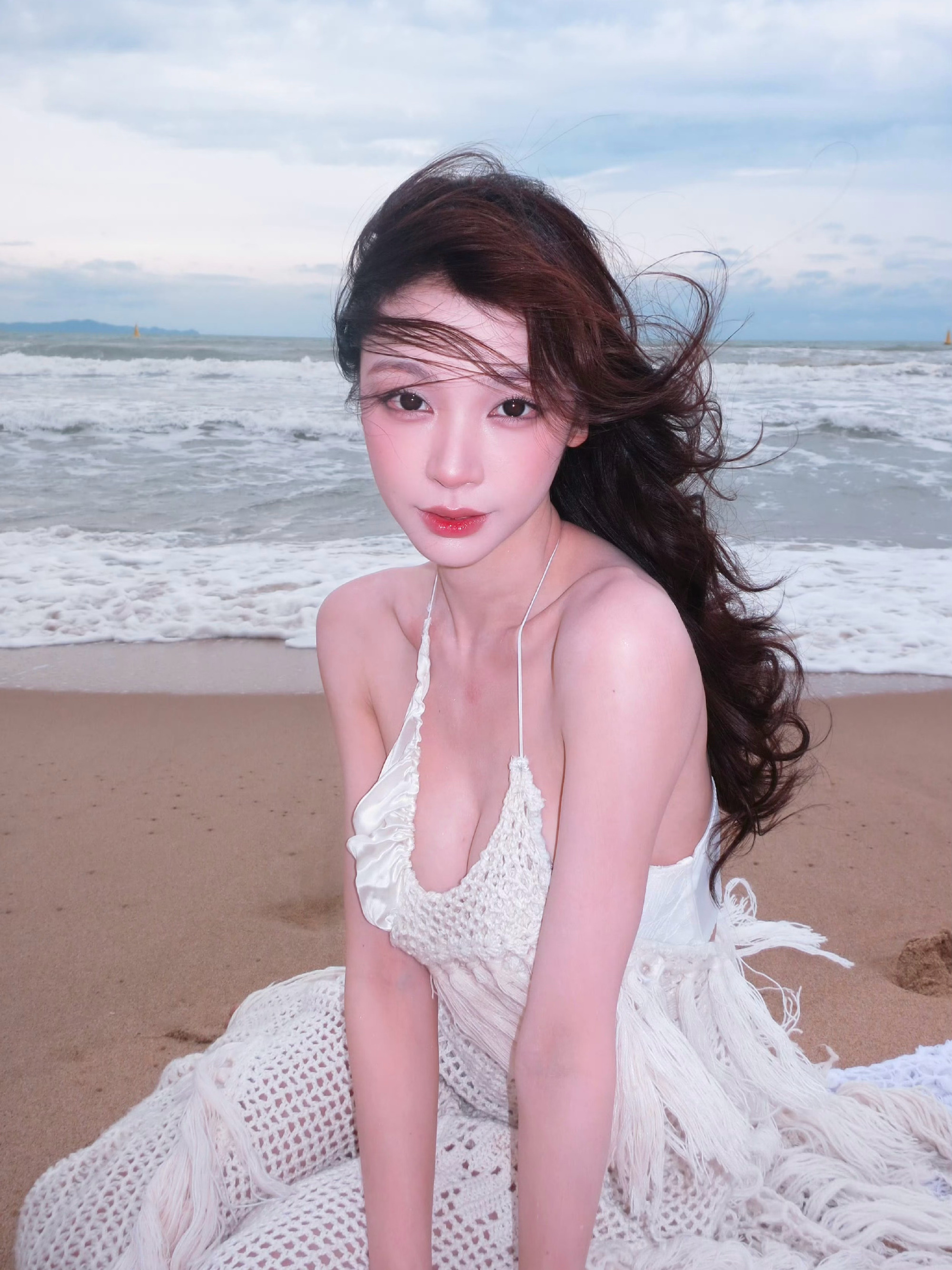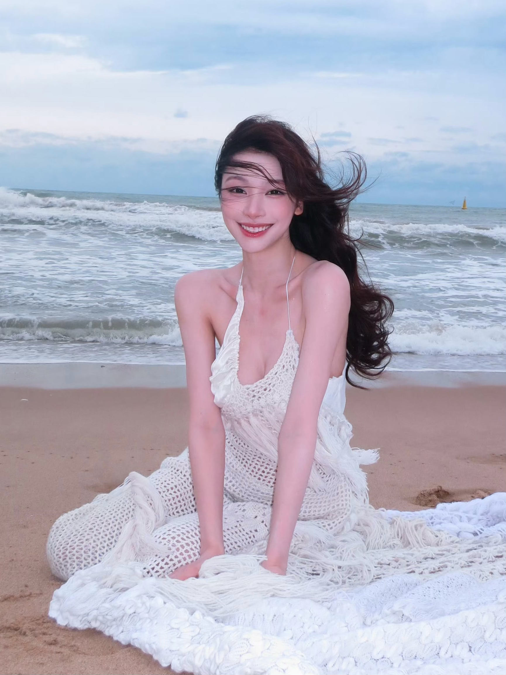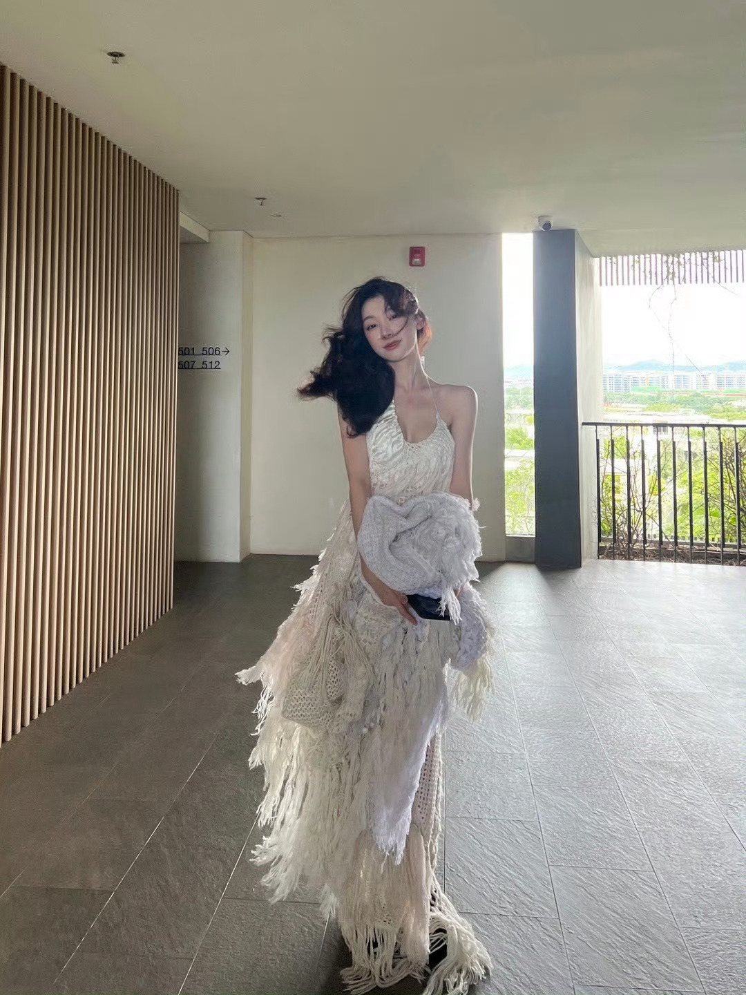 易梦玲,白色长裙穿搭,好柔美好身材。易梦玲