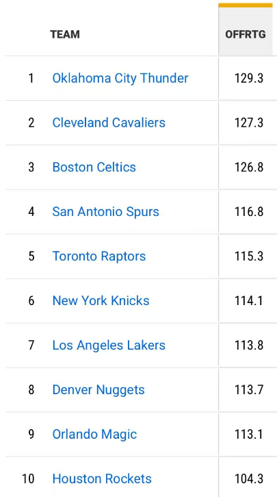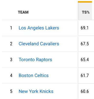 季后赛首轮G1全部结束,湖人排在:投篮命中率第一,60.6%三分命中率第一,52.6%进攻效率第七,113.8防守效率第七,104.3有效命中率第一,68.2%真实命中率第一,69.1%