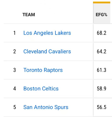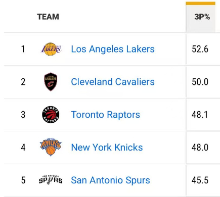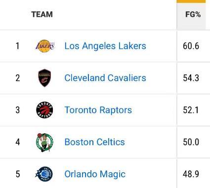 季后赛首轮G1全部结束,湖人排在:投篮命中率第一,60.6%三分命中率第一,52