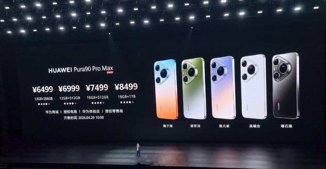 华为Pura80Pro12+256 6499元,12+512 6999元,12+1TB 7999元华为Pura90Pro12+256 5499元,12+512 5999元,16+512GB 6499元 16+1TB 7499元
