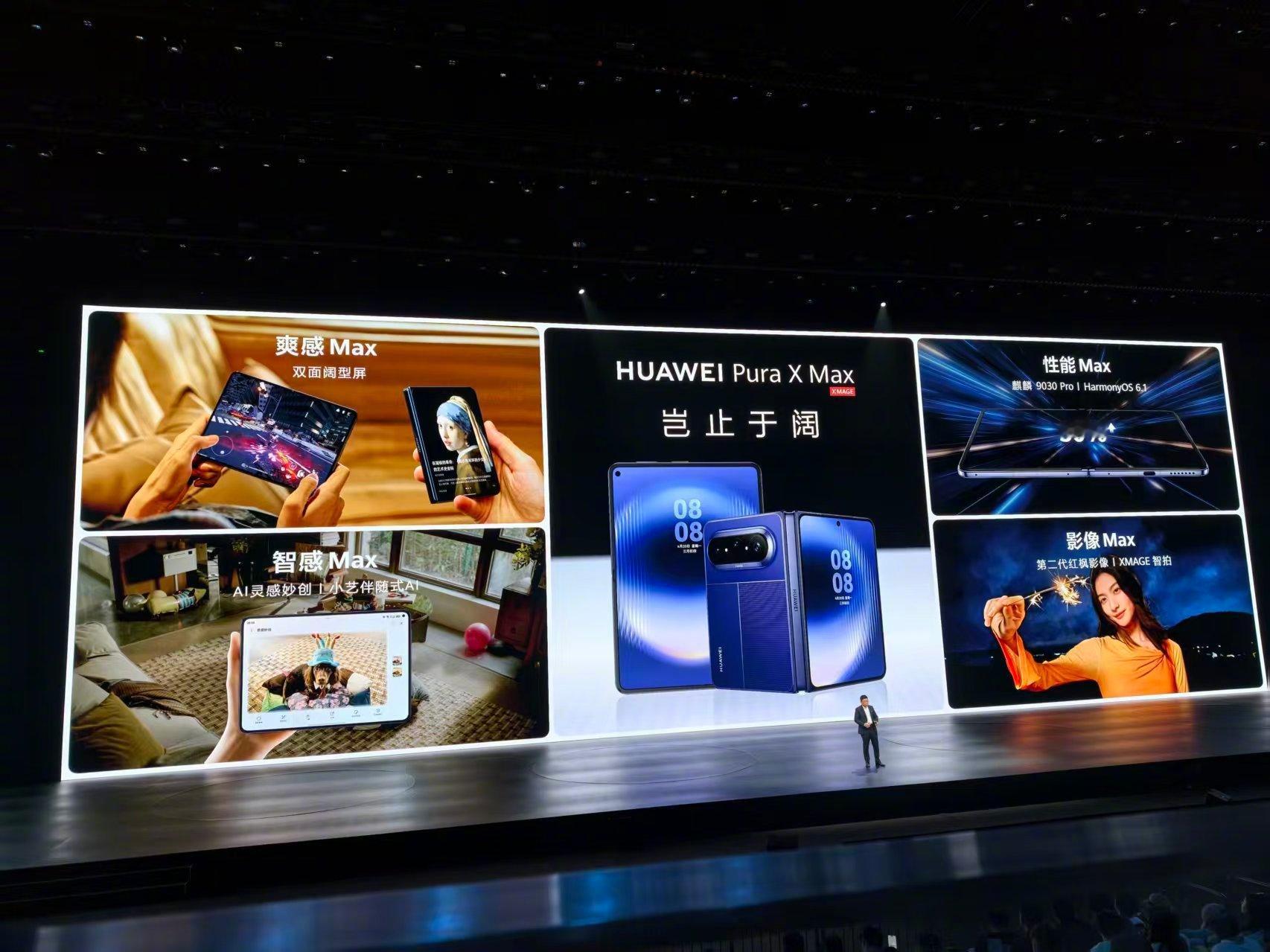 全球首款大阔折正式发布 华为Pura X Max今天下午正式发布,这代新机主打的是设计、屏幕、影像和AI体验同步升级。