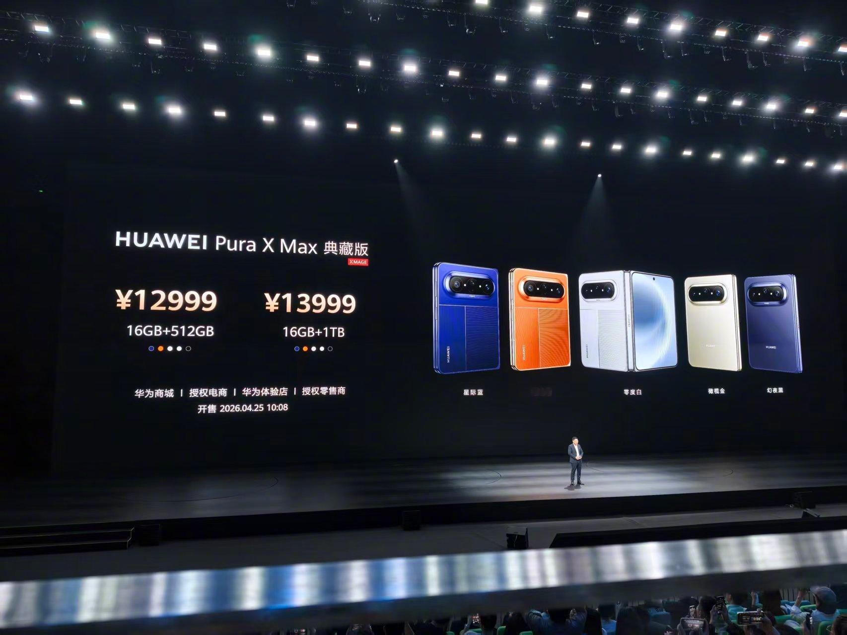 价格方面华为Pura X Max 12GB+256GB 10999元华为Pura X Max 12GB+512GB 11999元华为Pura X Max 典藏版 16GB+512GB 12999元华为Pura X Max 典藏版 16GB+1TB 13999元