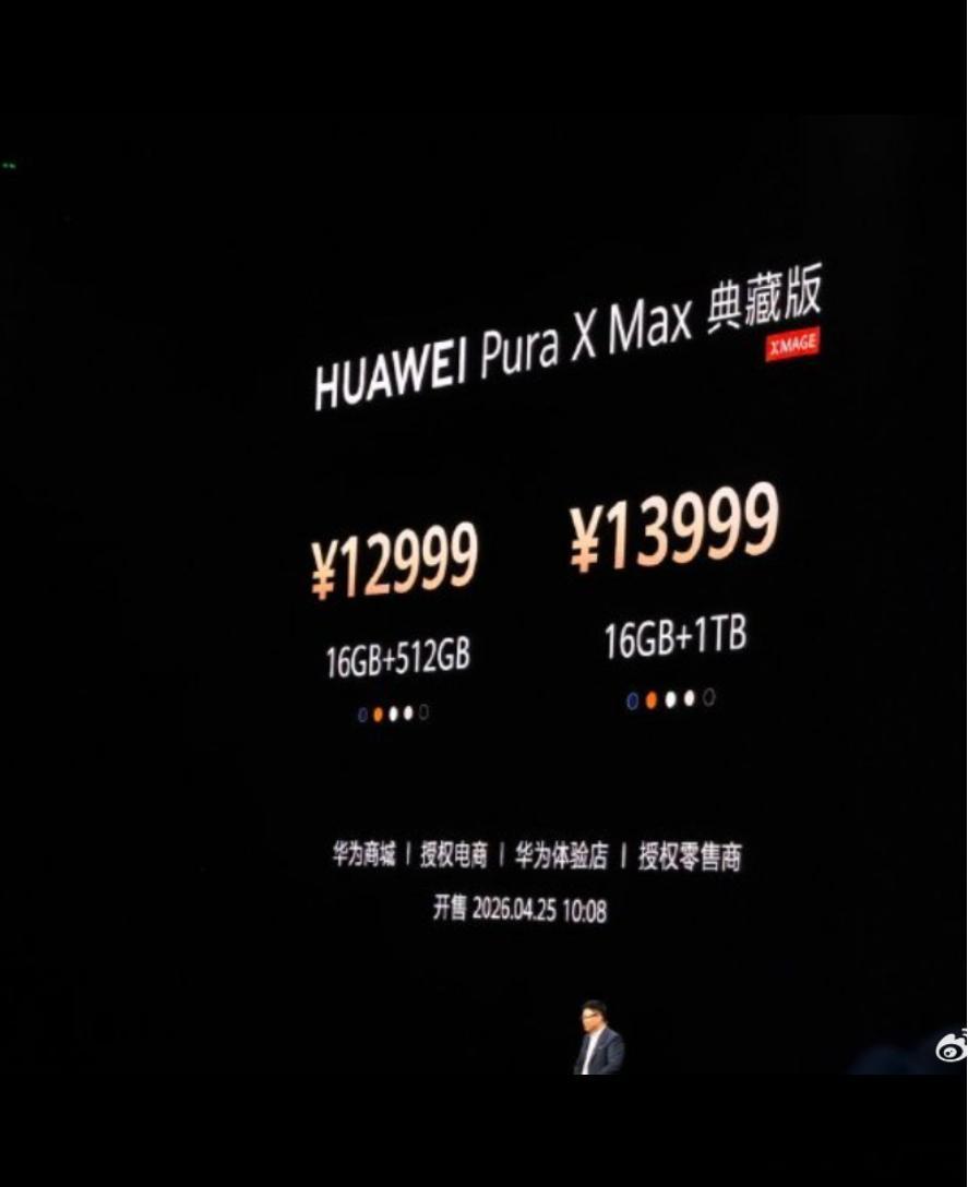 Pura X Max大折叠起售价10999,意料之内,比Mate X7便宜200