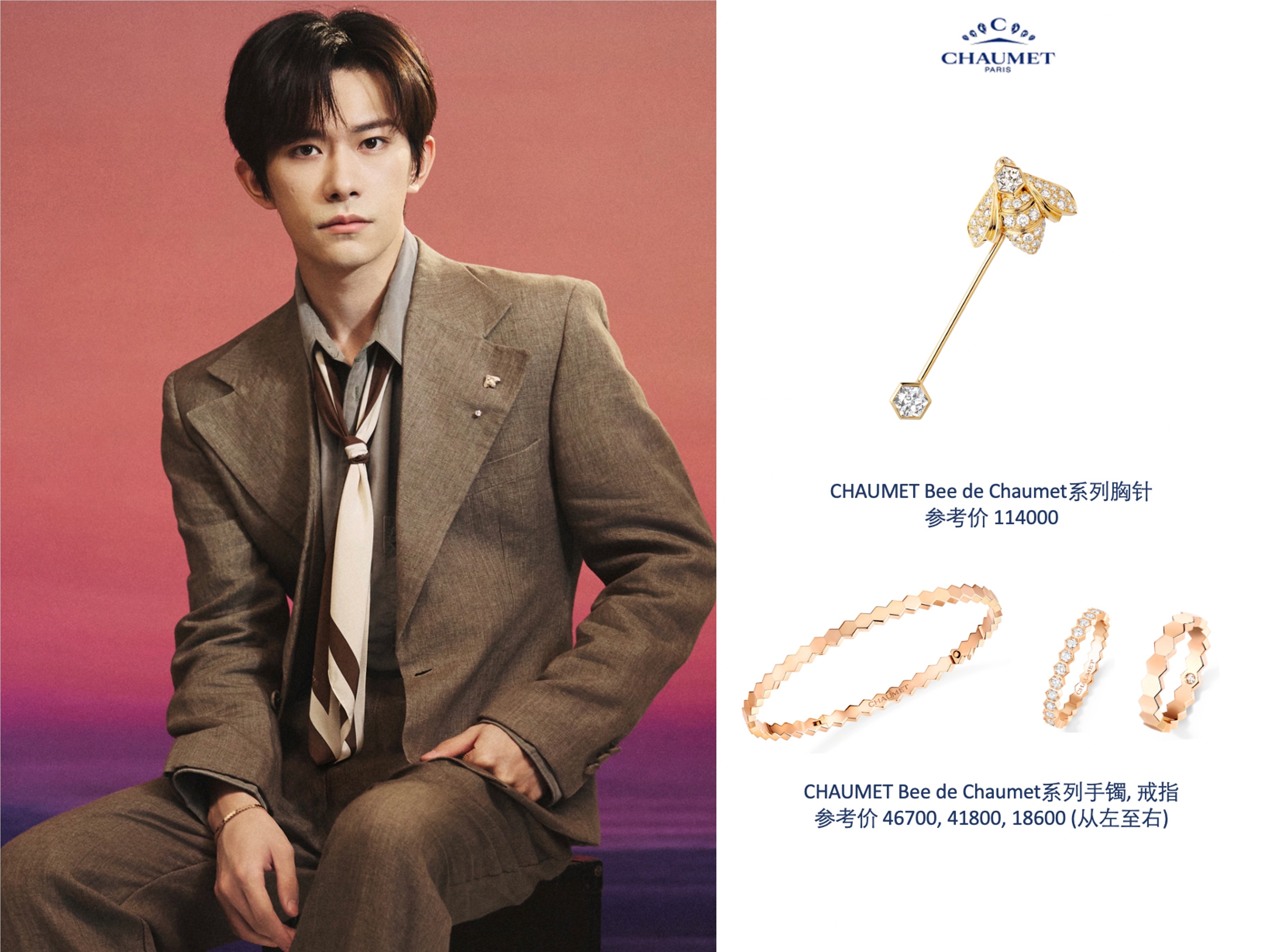易烊千玺 佩戴CHAUMET Bee de Chaumet系列珠宝亮相品牌线下活动,蜜蜂造型胸针定格温柔矜贵瞬间,蜂巢手镯与戒指流转细碎光芒,于粉雾氤氲中闪释放摩登闪耀“蜂”芒。
