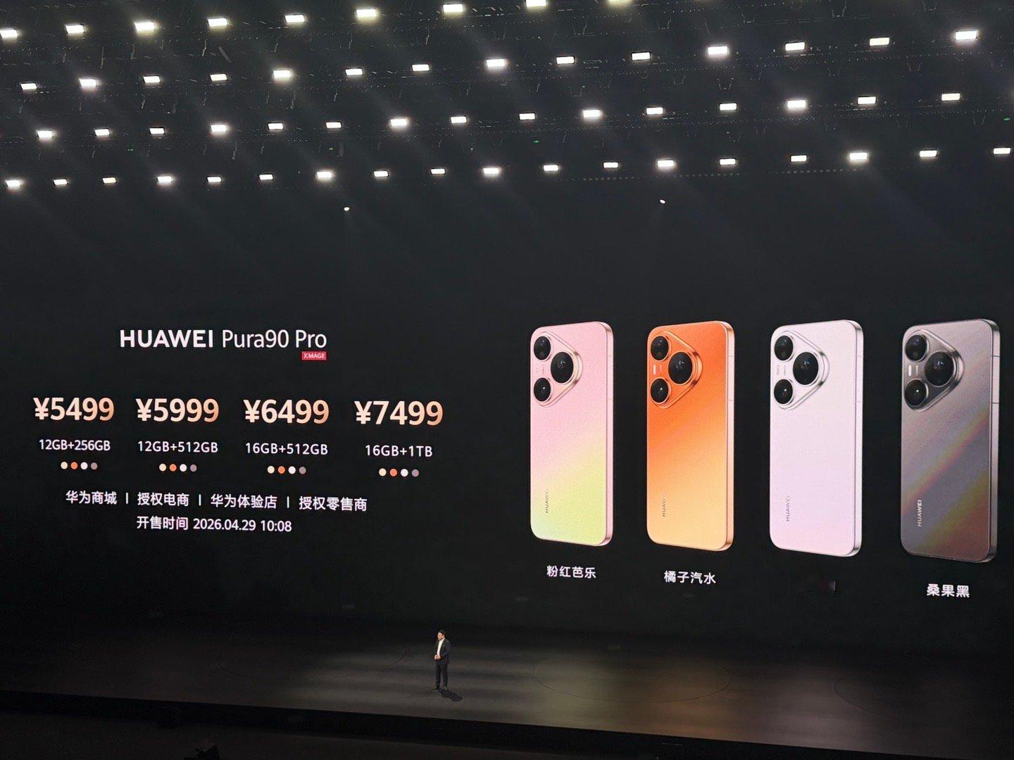 Pura90 Pro Max:12GB+256GB —— 6499元12GB+512GB —— 6999元16GB+512GB —— 7499元16GB+1TB —— 8499元