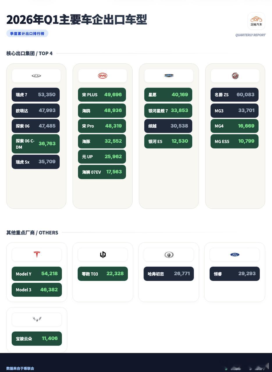 这五家构成了中国汽车出口的核心基本盘。