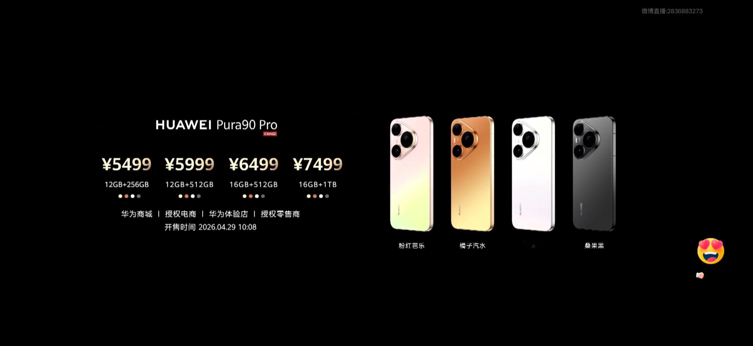 华为Pura 90价格4699起,Pura 90Pro 价格5499起,Pura