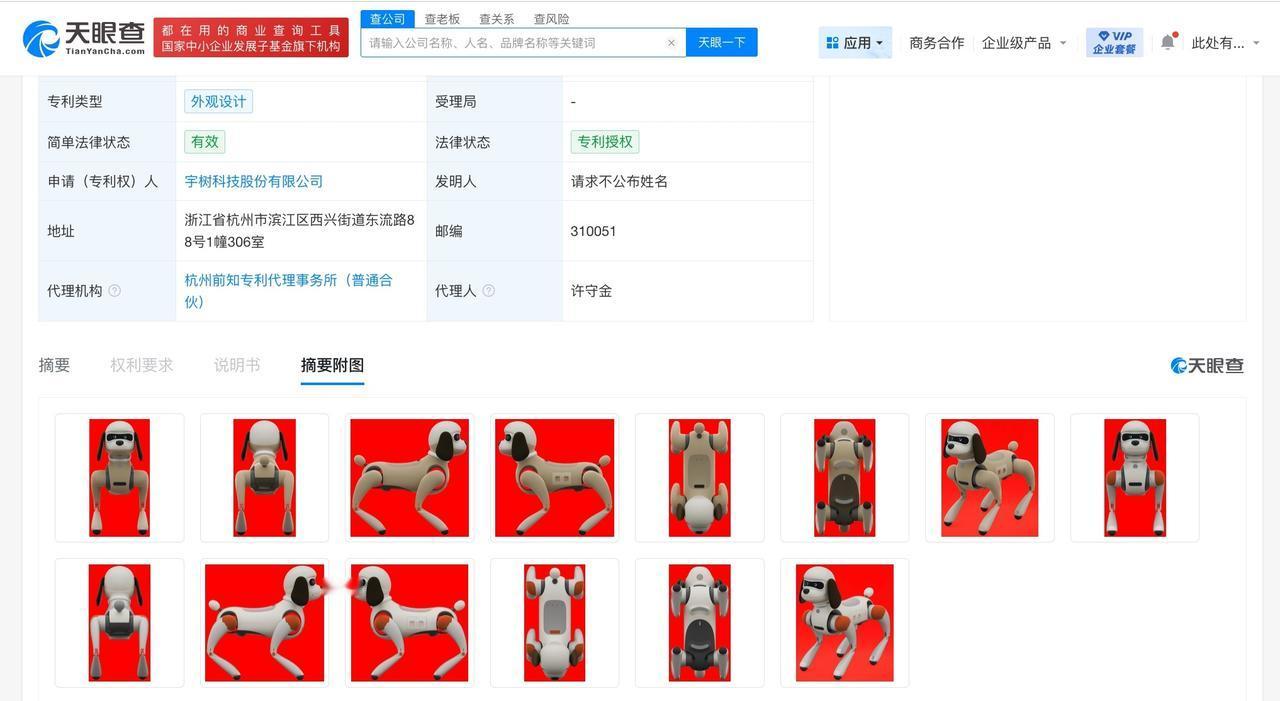 宇树科技机器狗外观专利获授权