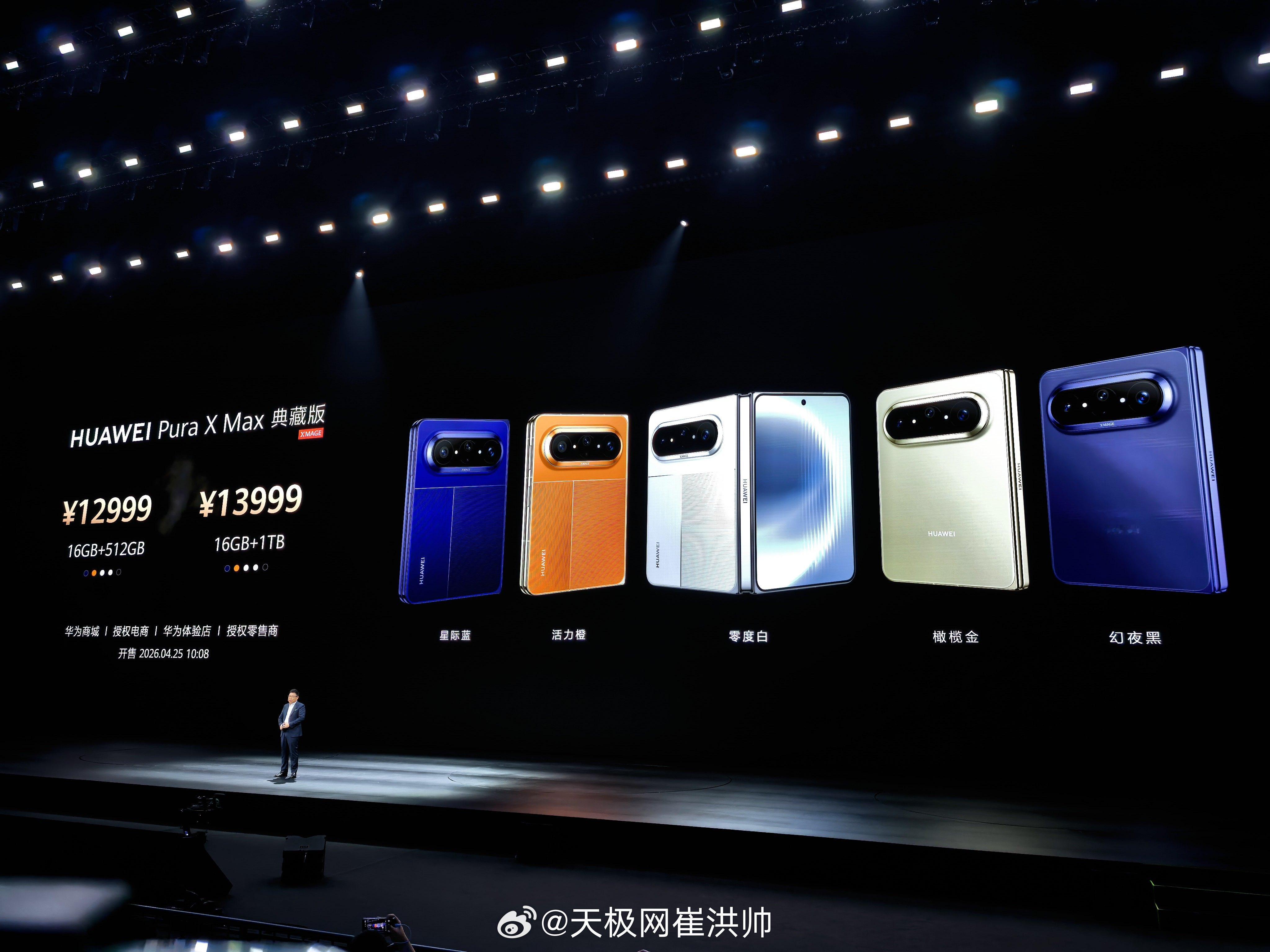 华为Pura X Max售价10999元起,典藏版12999元起。