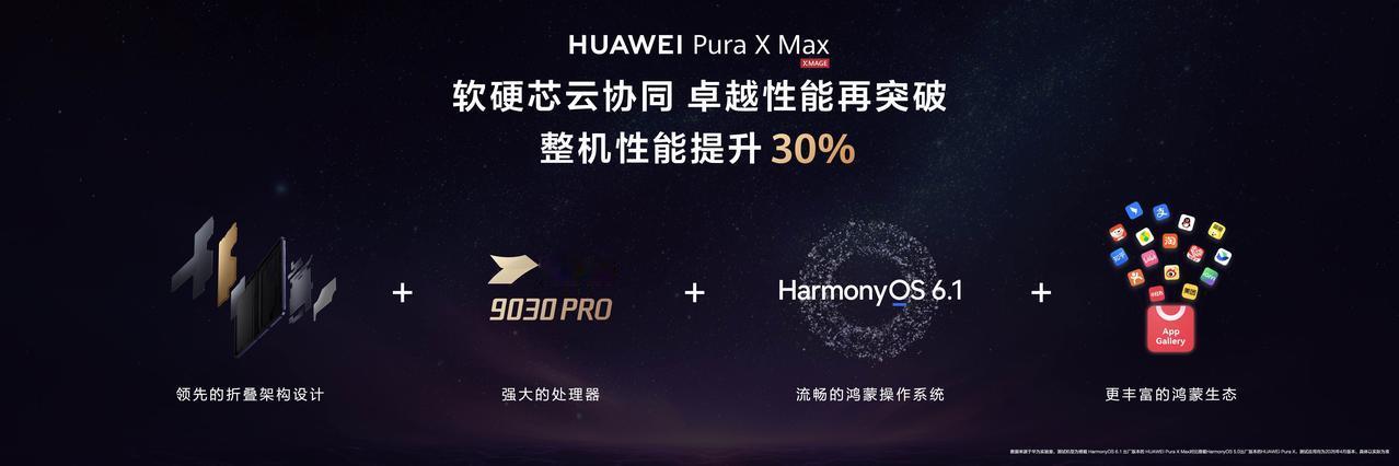 华为Pura X Max性能全面进阶,全系搭载麒麟9030 Pro旗舰芯片,联动HarmonyOS 6.1深度芯软协同,整机性能提升30%。且伴随鸿蒙星河互联再升级,华为Pura X Max支持与大疆Pocket 4设备直传,通过华为分享即可高速稳定传输视频、图片、动图等素材,高效衔接拍摄与创作。