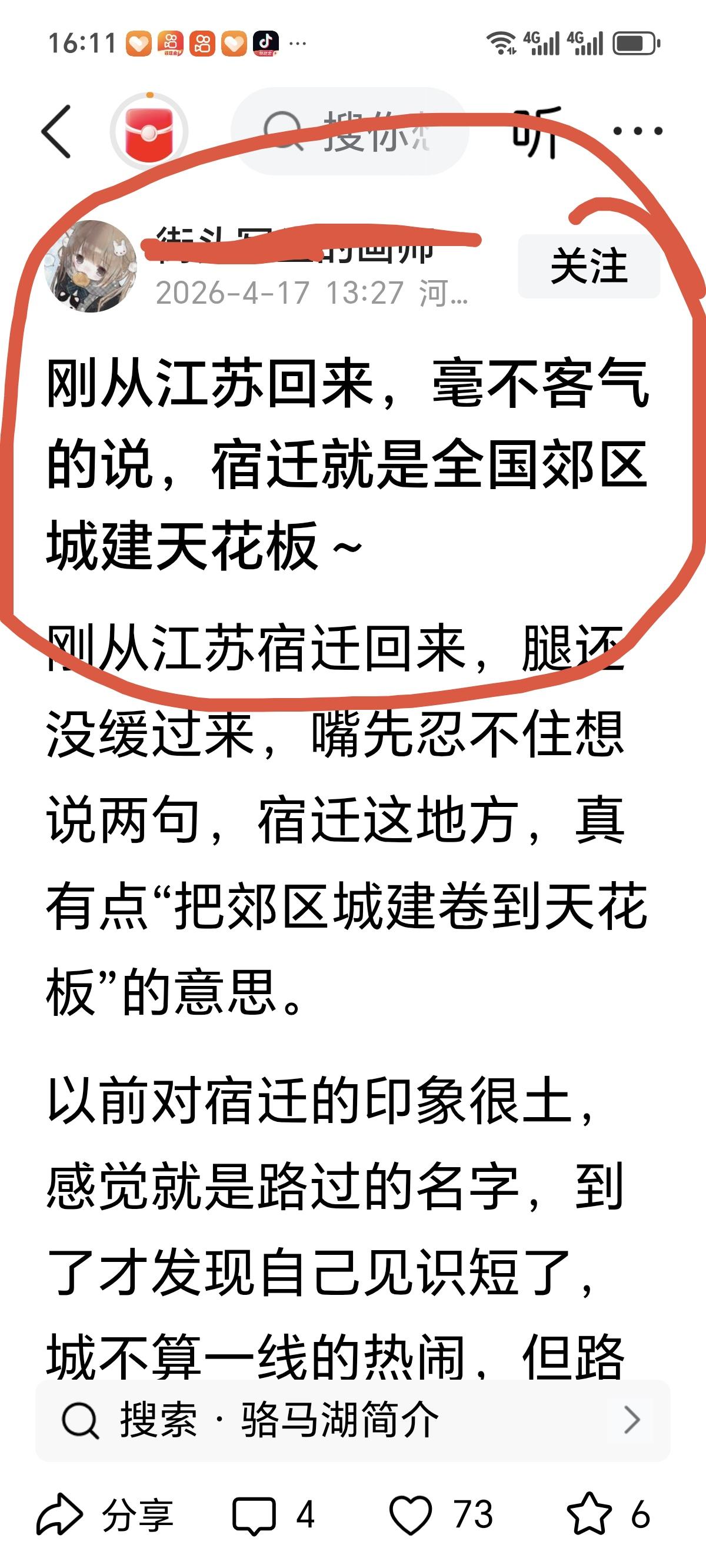 记录我的2026 城建 不知道是苏北五市某些网友坐井观天,还是平台上把关不严。同样的标题,仅仅换个城市名字便粉墨登场,实在可笑极了。徐淮盐连宿都成全国郊区城建的天花板了,让人笑掉大牙。而苏南那些富可敌国的城市、苏中的小康城市,却一个都没有了,人家根本不玩这个贻笑大方的梗。