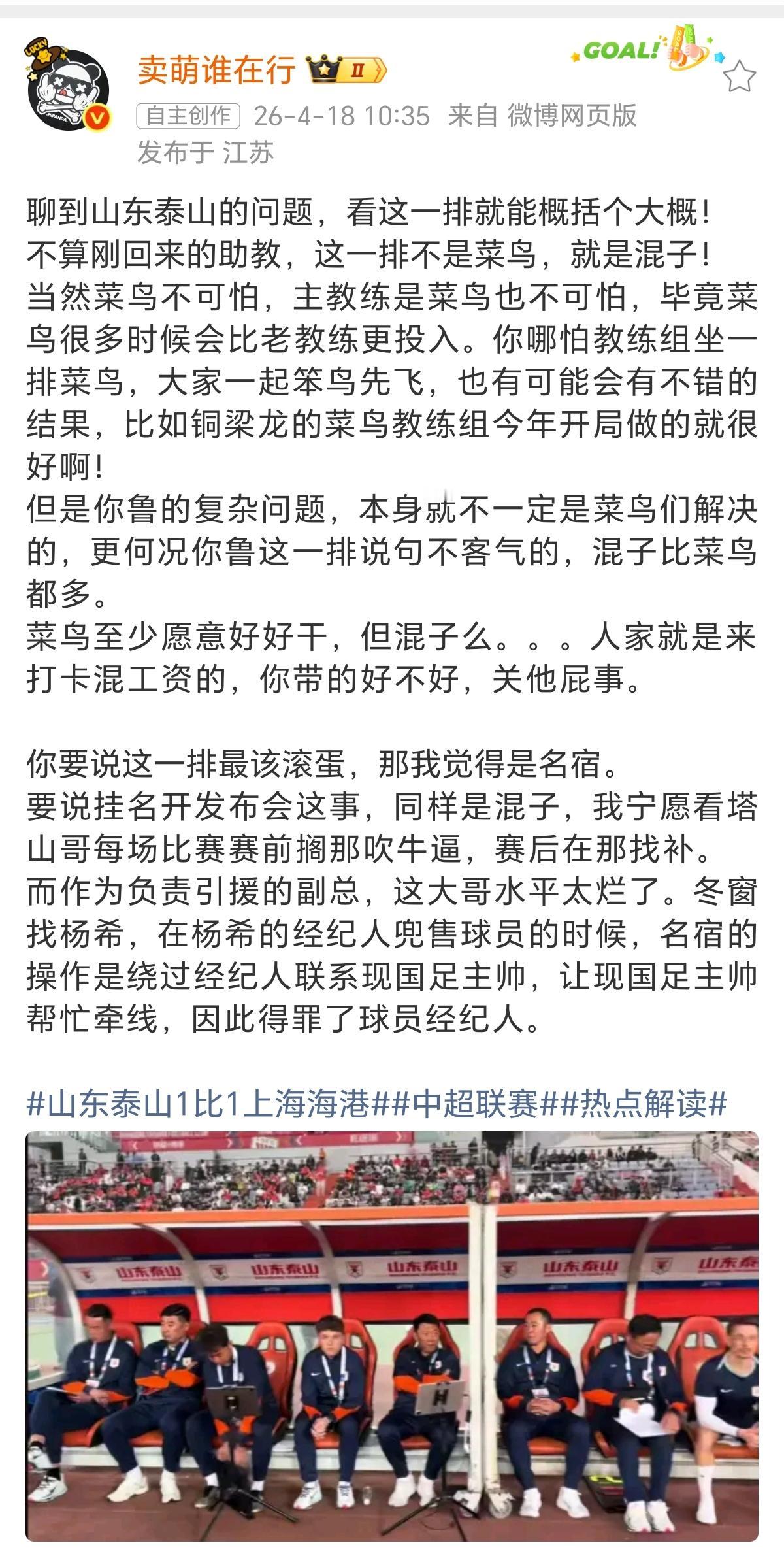 从泰山队助教发文,我们也能看出他对足球的认知。