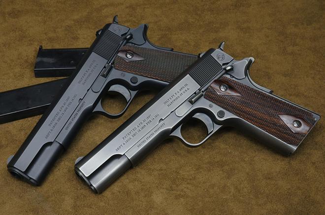 首先登场的是柯尔特M1911A1,这支历经百年的经典枪械,采用.45ACP口径,弹匣容量为7+1发,空枪重量仅1.1千克,有效射程50米。