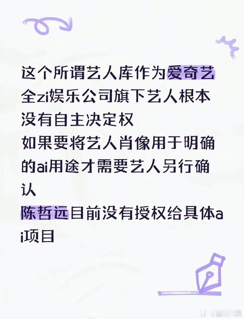 未授权AI艺人哈哈哈哈爱奇艺以为自己很聪明,提前布局了下一个风口,即将成为视频平台的王者,结果没想到不仅被骂“疯了”,还被艺人澄清“未签署过任何AI相关授权”!!!这不就是典型的“小丑竟是我自己”吗?爱奇艺CEO你干嘛呢?