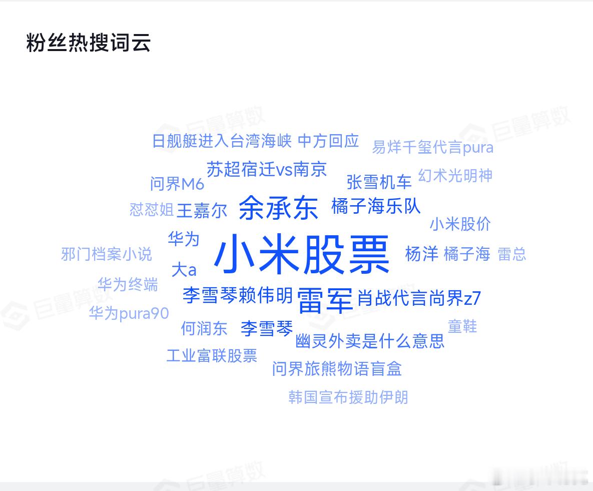 两位大佬的粉丝热搜词,都有一个共同点,那就是非常关心小米和雷军,不知道的还以为是一家公司的呢。