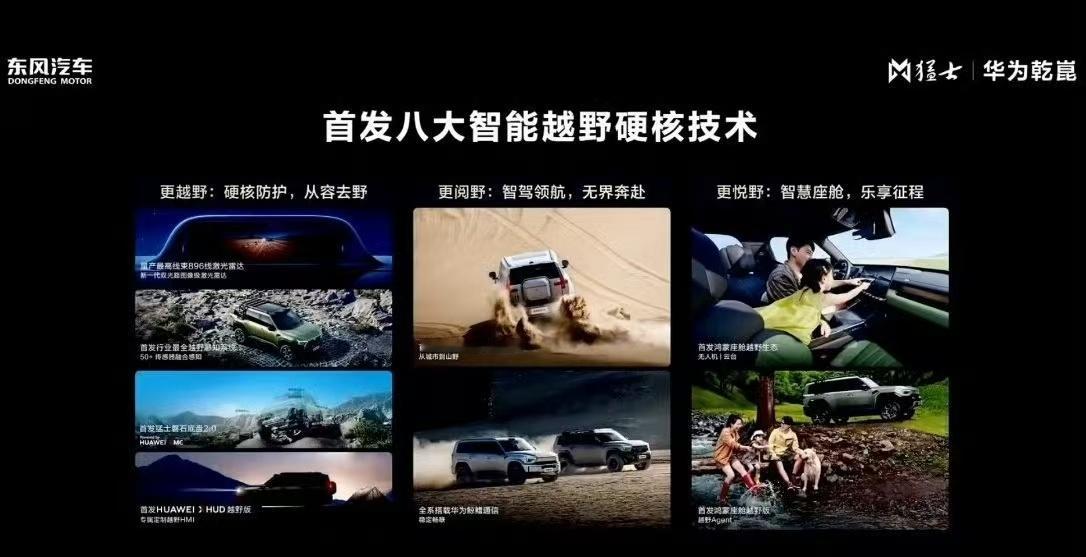 东风猛士军工越野底盘底子+华为乾崑全套智驾技术深度绑定,首创「军车基因+华为智驾」融合模式。896线越野激光雷达、行业最全越野感知系统、越野定制XHUD、全地形XMC数字底盘、越野NCA、鲸鳍通信、鸿蒙越野座舱全维度落地。把城市智能和越野性能彻底打通,让硬核越野从专业小众圈层,真正走向大众日常。上市4个月万台下线、3月销量2036辆,市场已经给出答案。未来2年4款全新车型,智能越野赛道正式迎来新标准。猛士x华为乾崑全球首家旗舰店开业